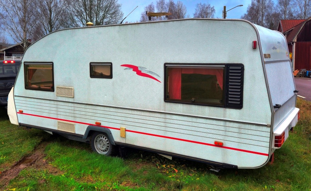 Vinterbonad husvagn i bra bruksskick, skavanker finnes.