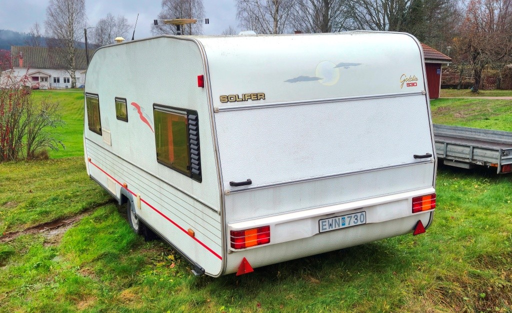 Märke/Modell: Solifer Goldie 530Årsmodell: 1998Besiktad tom: 2026-04-30Totalvikt: 1230 kgMax lastvikt: 230 kgLängd: 7250 mmBredd: 2200 mm