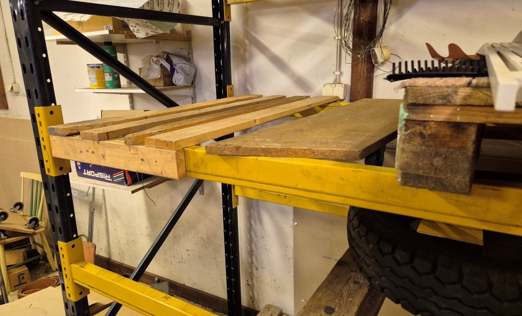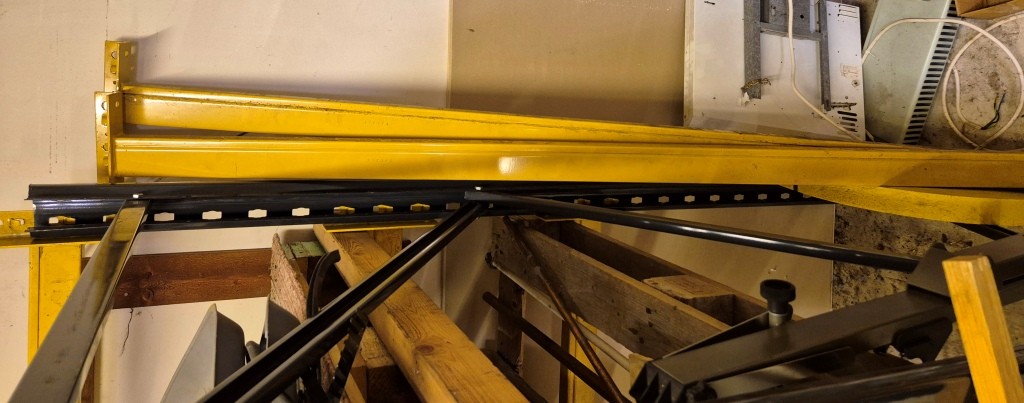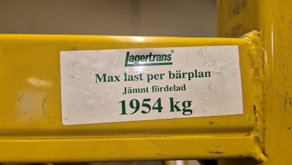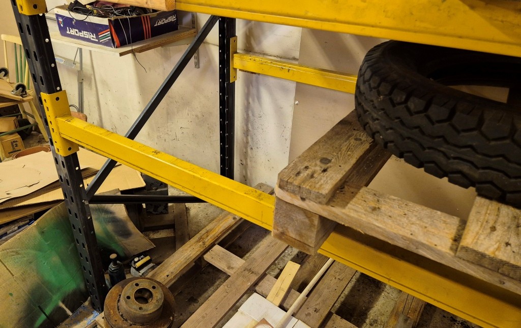 Pallställ (innehåll ingår ej)Mått: 205x100x195cmOBS! Om inte motorn högst upp i pallstället blir såld står köparen av pallstället för att ta ur materialet som ligger i stället.