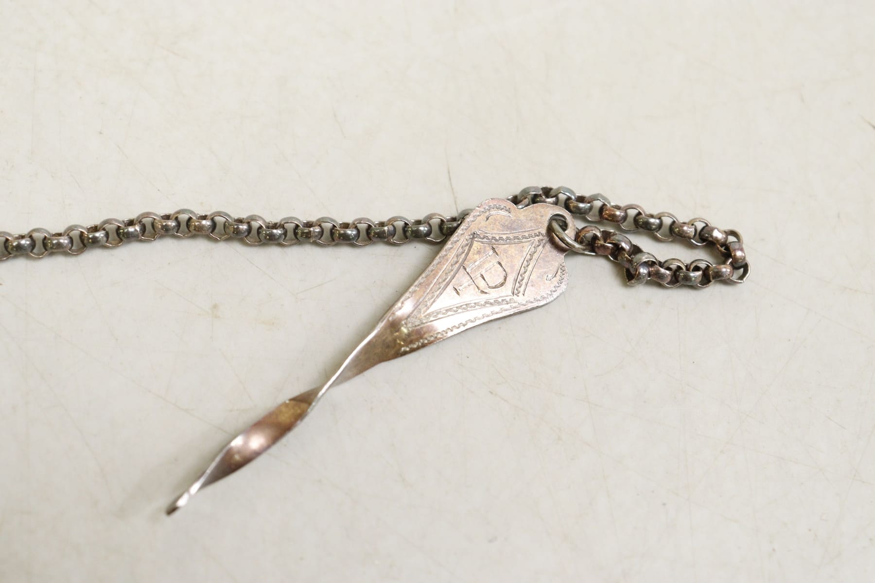 Snörnål med kedja, silver, Pålmans, Ystad, H(J)P 1957, vikt 36 gram