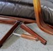 stoppad sits och rygg i djuphäftat svart läder, stomme i lövträ, fot i metall