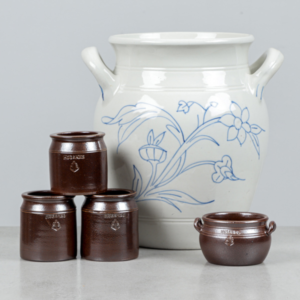 Blåvit kruka, Rörstrand, samt 4 st miniatyrer, Höganäs
