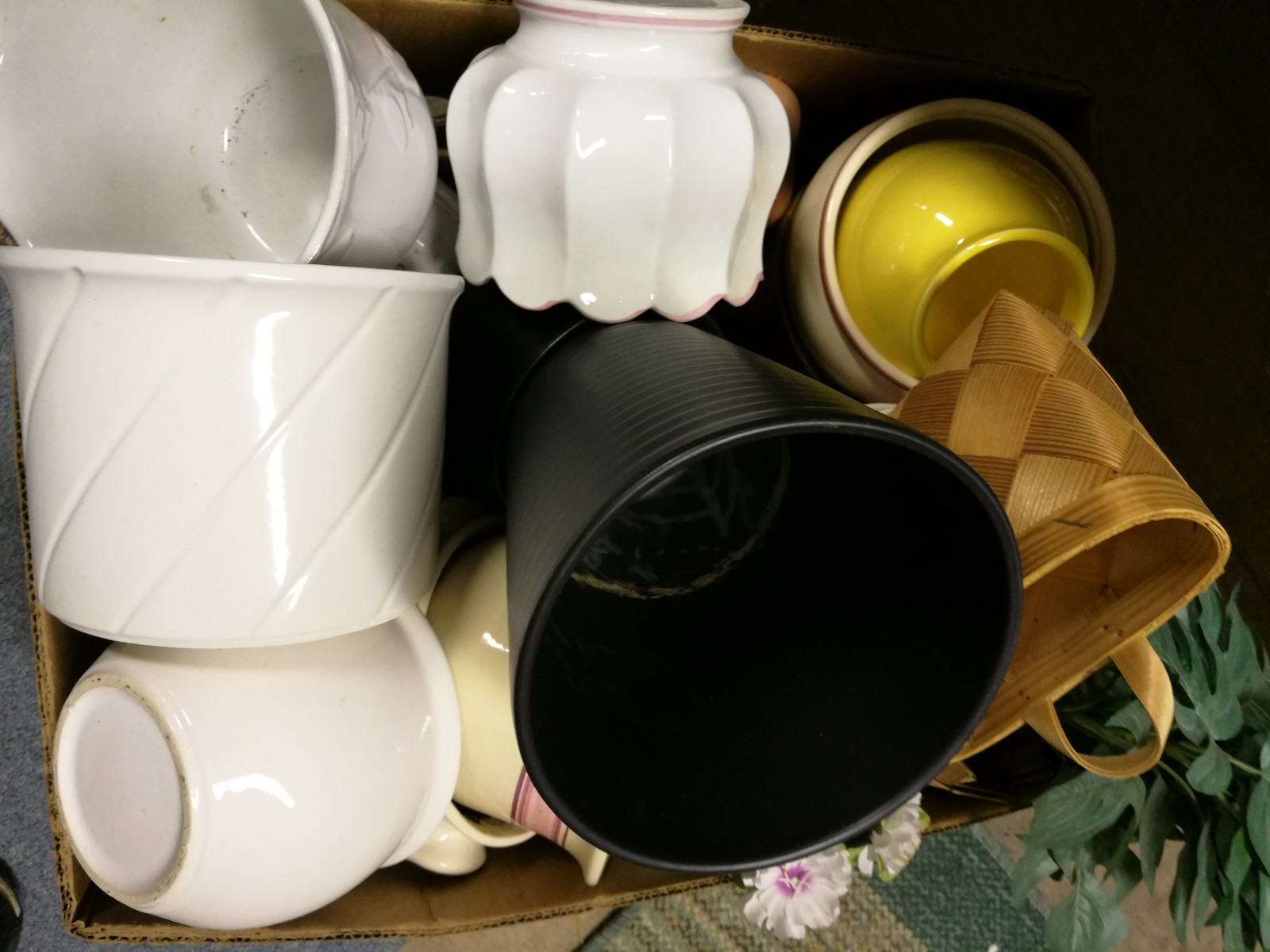 Vit glasyr, cylindrisk, dräneringshål, höjd ca 42, diameter 37 cm