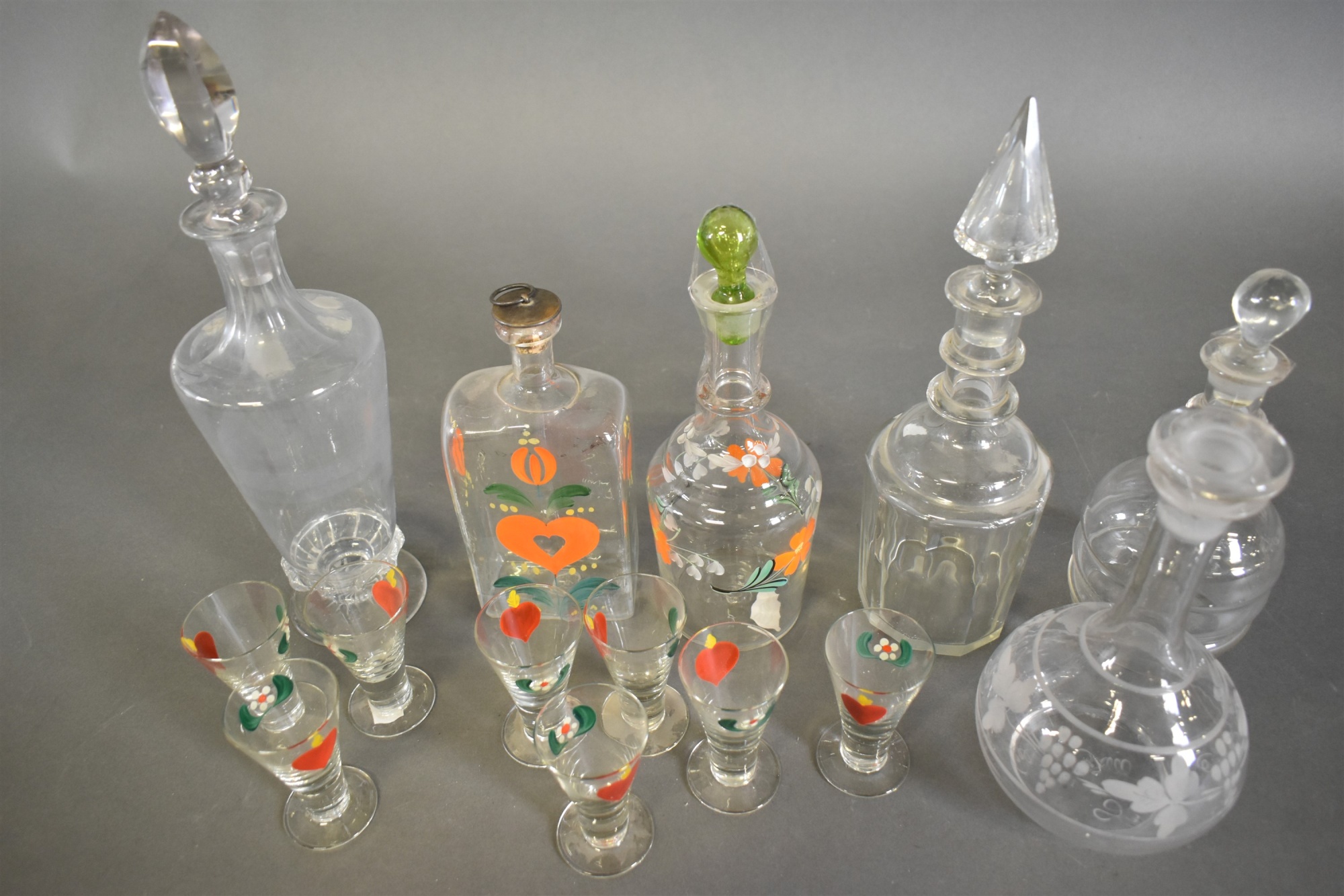 Bilder Parti brännvinsflaskor glas, högsta 38 cm