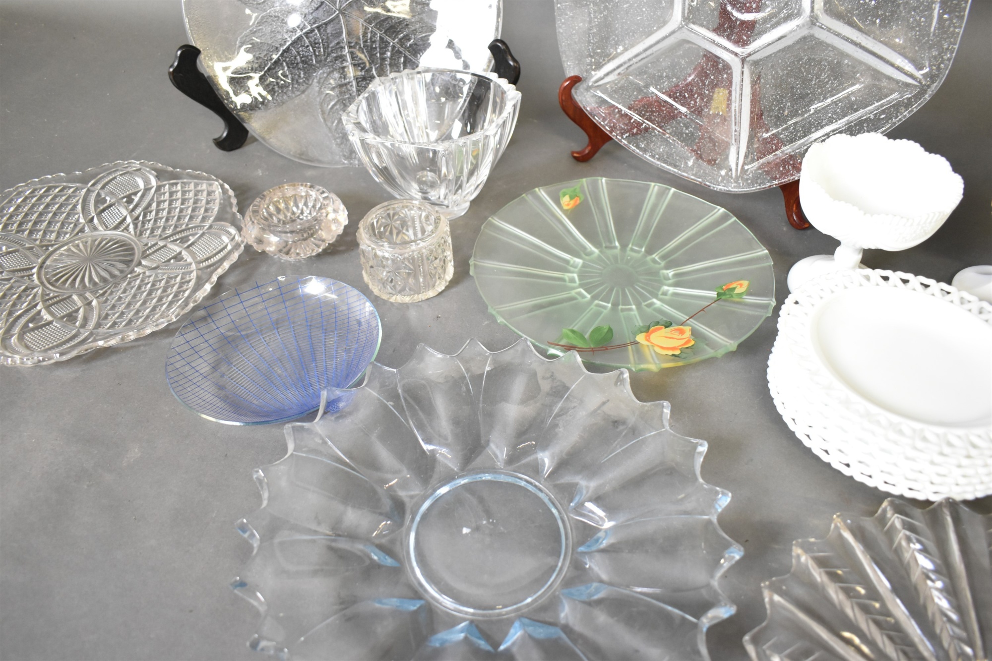 Bilder Parti glas, bl.a fat assietter, största diameter 33 cm
