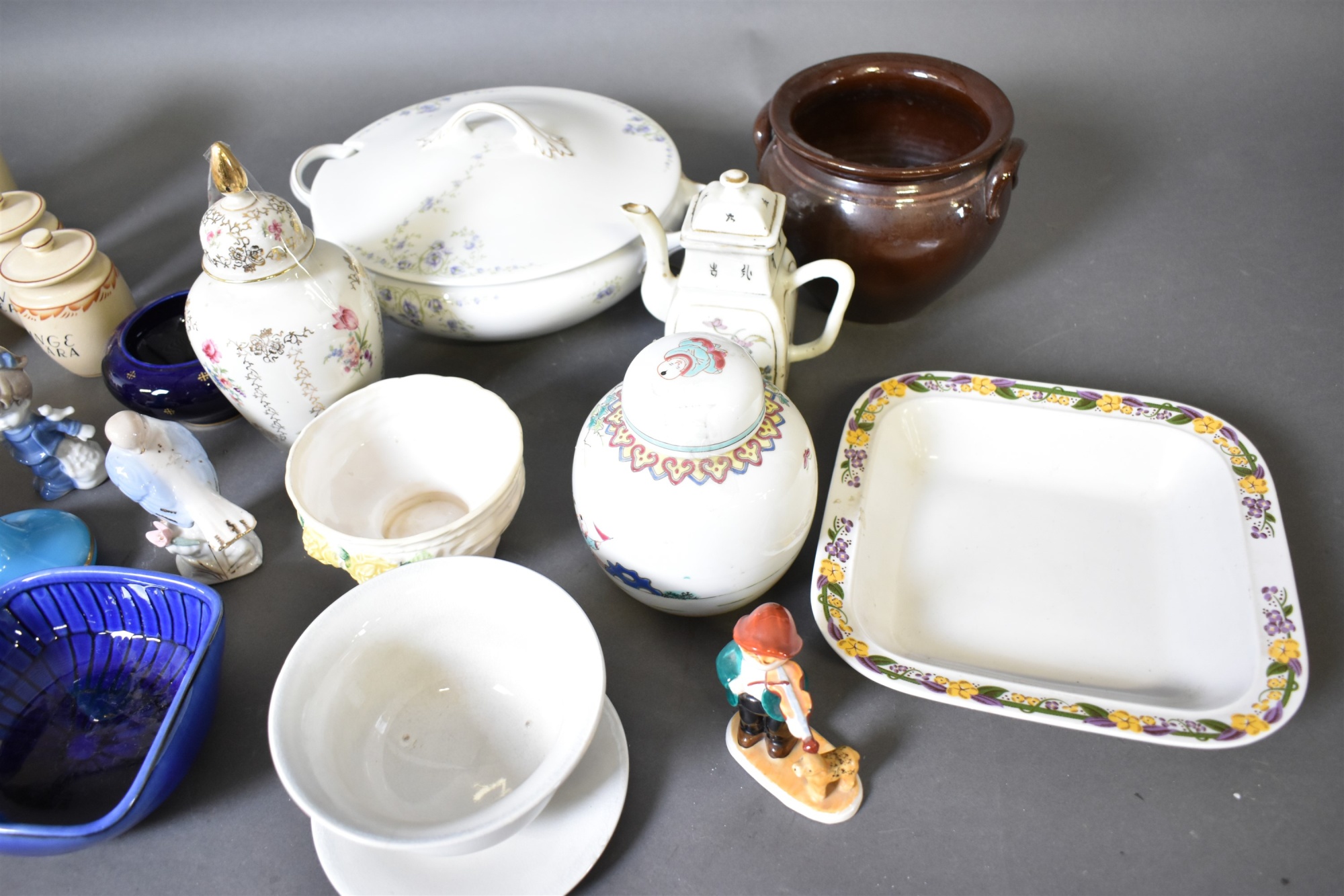 Parti keramik, bl.a kryddburkar, terrin högsta 22 cm