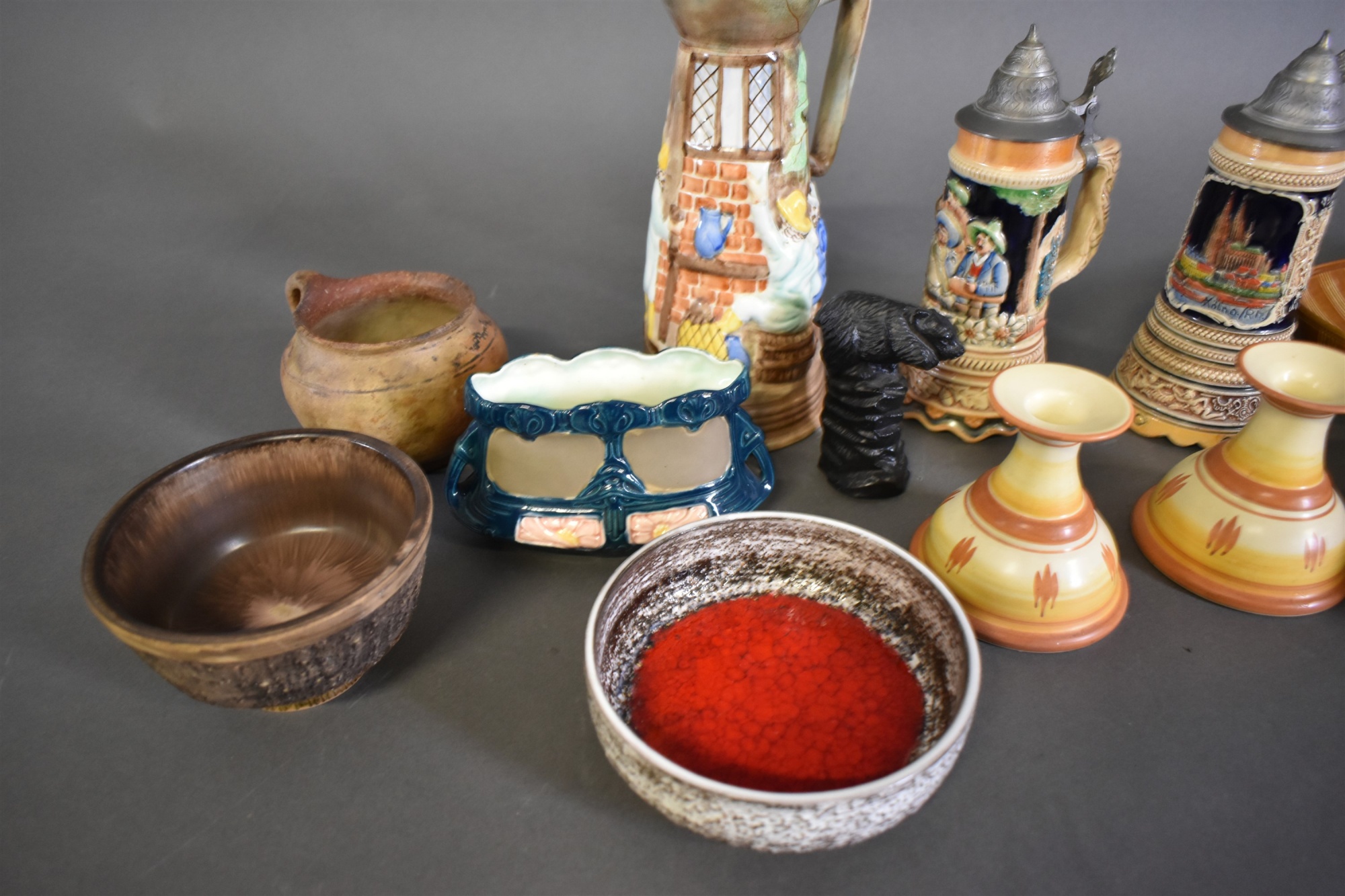 Bilder Parti keramik bla stop med speldosa och skålar, högsta höjd 28 cm