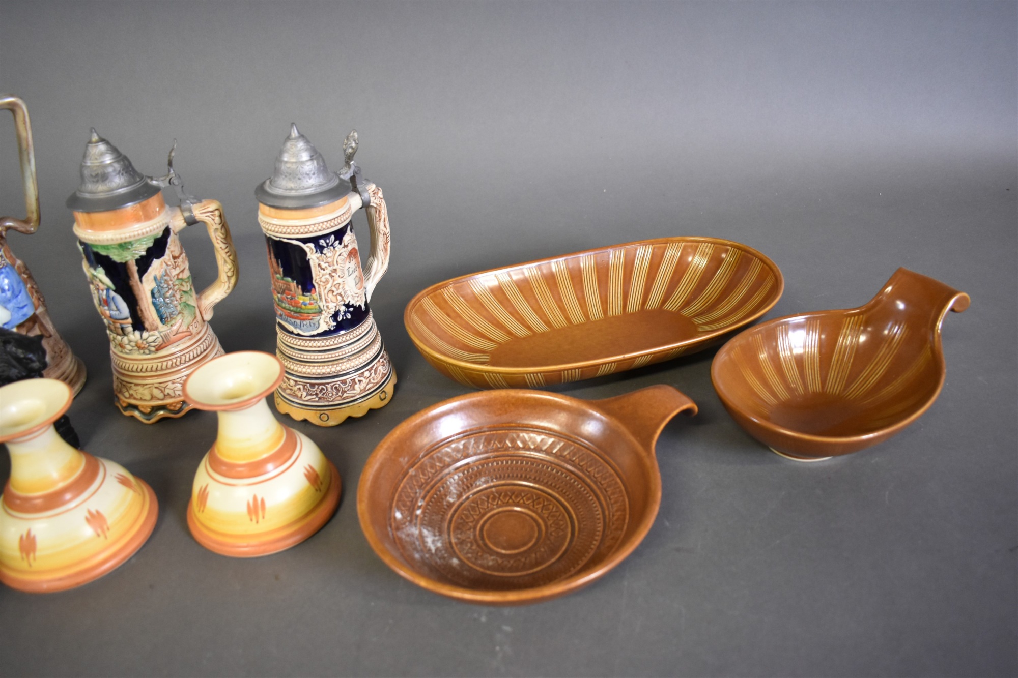 Parti keramik bla stop med speldosa och skålar, högsta höjd 28 cm