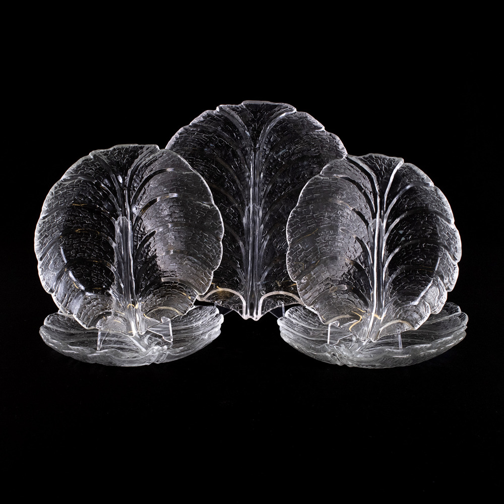 Lars Hellsten, fat med tallrikar, 7 delar, "Eden", Orrefors, diameter 31 cm och mindre