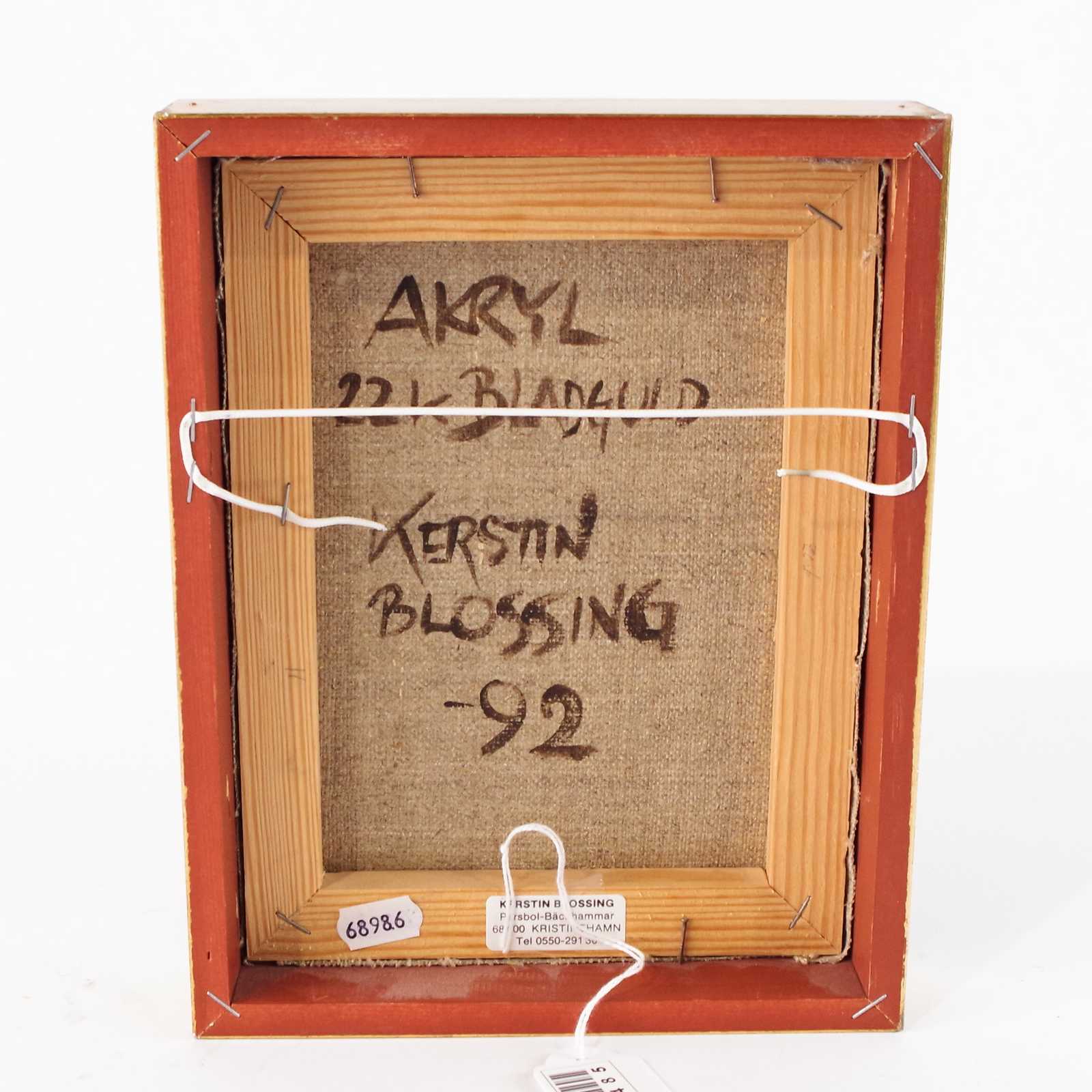Bilder TAVLA Kerstin Blossing, akryl, 22k bldguld. 14x19cm bildmått.