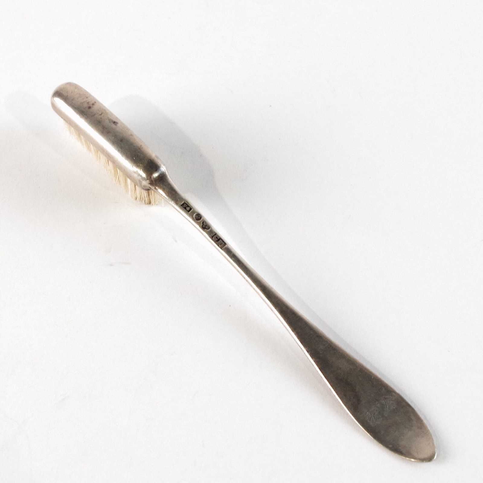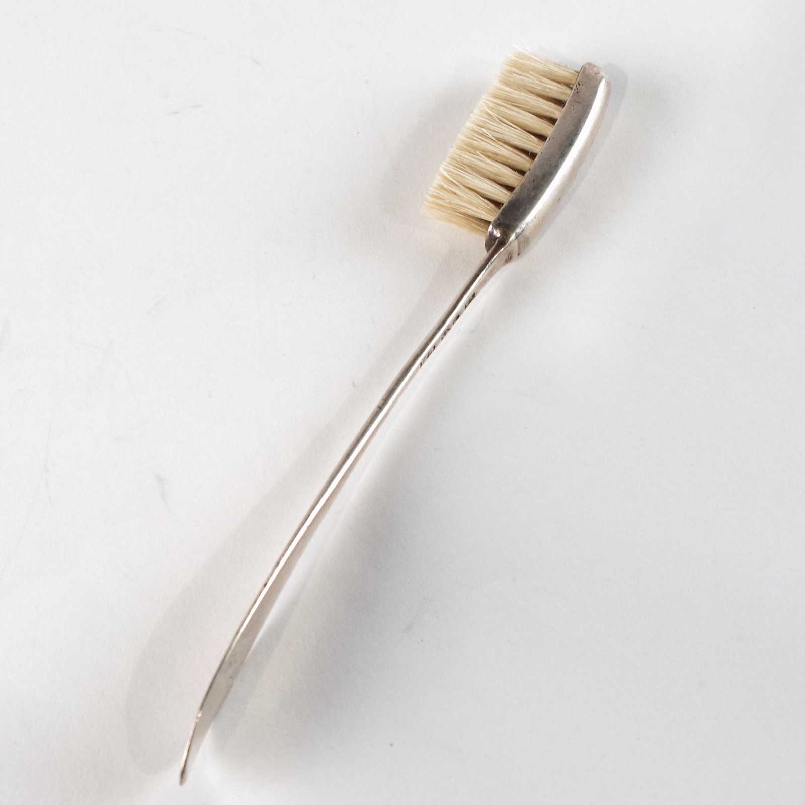 Auktioner Guld, Silver & Smycken BORSTE silver, Gustaf Möllenborg, år 1836. L:13cm. Inskription. 15 gram.