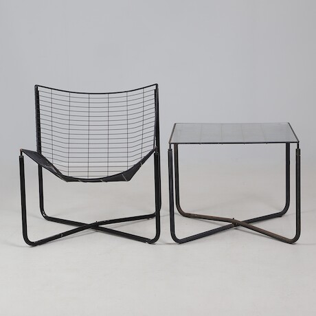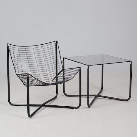 Niels Gammelgaard, "Järpen" fåtölj + bord med glasskiva 59 X 59 H=49