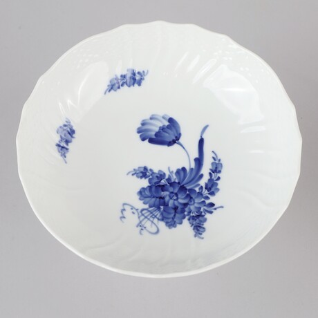 Auktioner Keramik & Porslin Skål på fot + ytterfoder, Royal Copenhagen, "Blå bomst", D = 21 o mindre