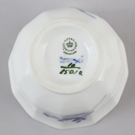 Skål på fot + ytterfoder, Royal Copenhagen, "Blå bomst", D = 21 o mindre