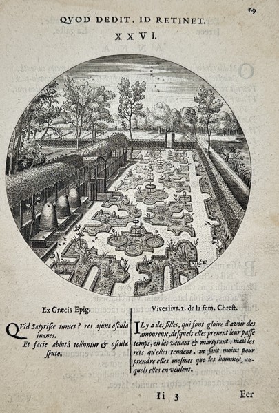 Bilder Jacob Cats – Garden with Formal Parterres and Beehives – Engraving (1640)