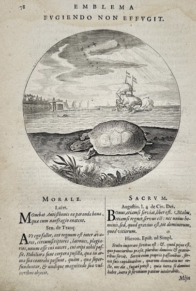Bilder Jacob Cats – The Fleeing Turtle and Ship (Fugiendo Non Effugit) – Engraving (1640)