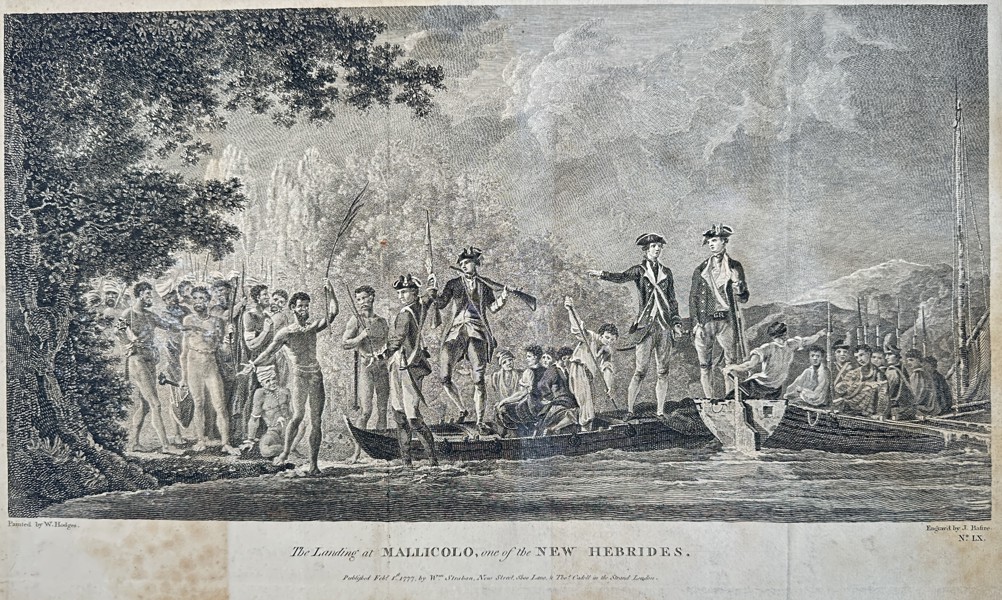 Bilder William Hodges (1744–1797), after – The Landing at Mallicollo, one of the New Hebrides – Engraving (1777)