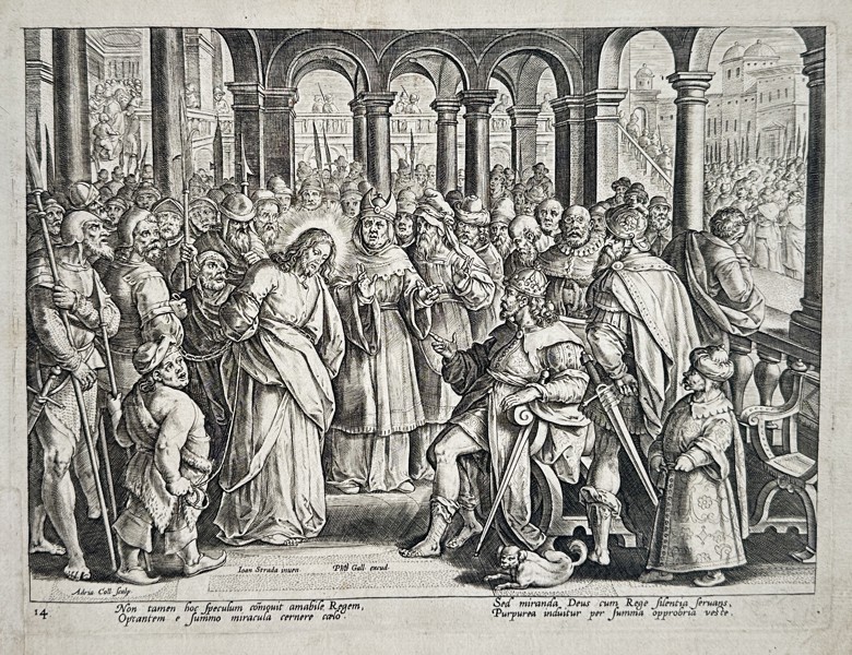 Bilder Philips Galle (1537–1612) – Christ Before the High Priest Caiaphas – Engraving (c. 1570)