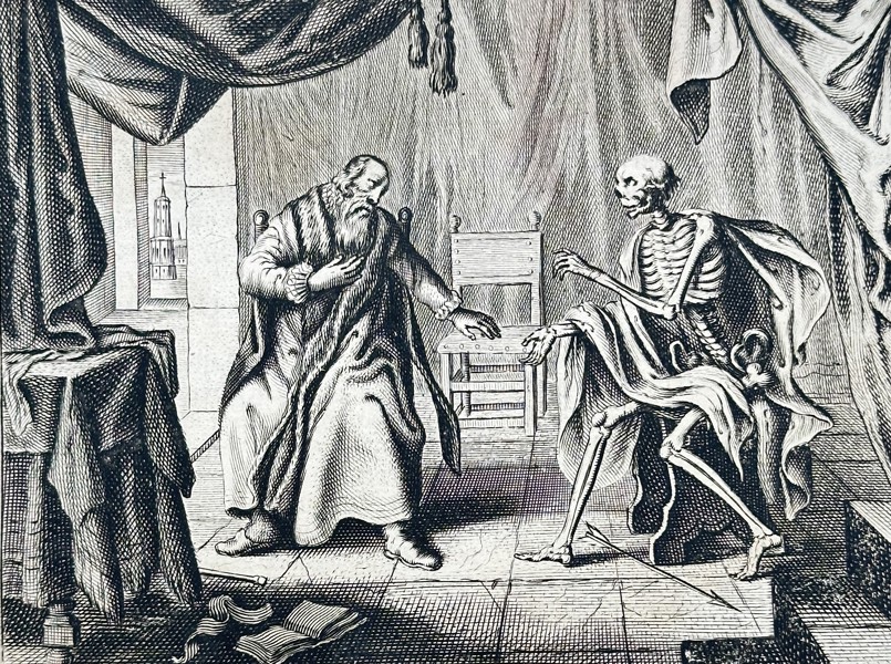 Bilder Jacob Cats (1577–1660) – Death and the Rich Man – Engraving (c. 1590)