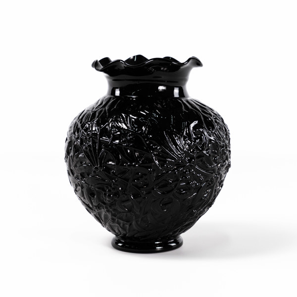 Edvin Ollers, vas, pressglas i svart glasmassa, dekor i relief, höjd 21 cm