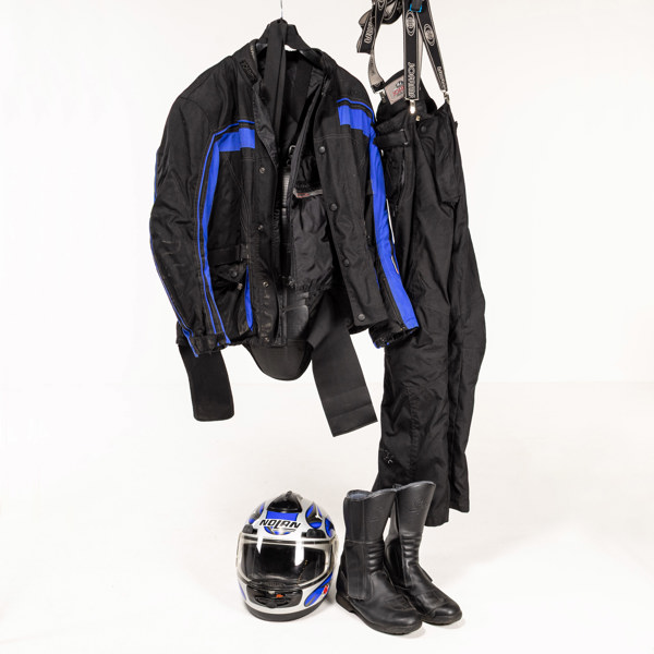 Motorcykelställ, 5 delar, allvädersställ, Jacka/Byxor; Jofama FW-4, storlek 50, Hjälm; Nolan Integrale N81, storlek M, Boots i skinn; Spruce, storlek 41, omärkt ryggskydd