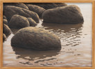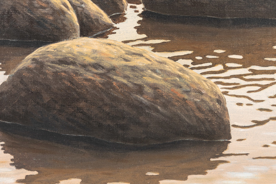 Stig Espe Olson, olja på duk, motiv med stenar i vattenbryn, signerad, mått med ram ca 48 x 38 cm
