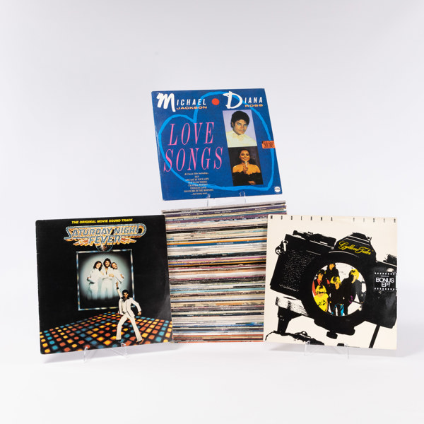 Vinylskivor, 100 st, 1970/80-tal, bl. a. Gyllene Tider, Michael Jackson, Saturday Night Fever, m. fl.