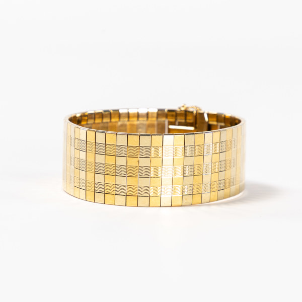 Armband, 18k vitt-, gult-, och roséguld, längd 19 cm, bredd 24 mm, vikt 58,5 gram