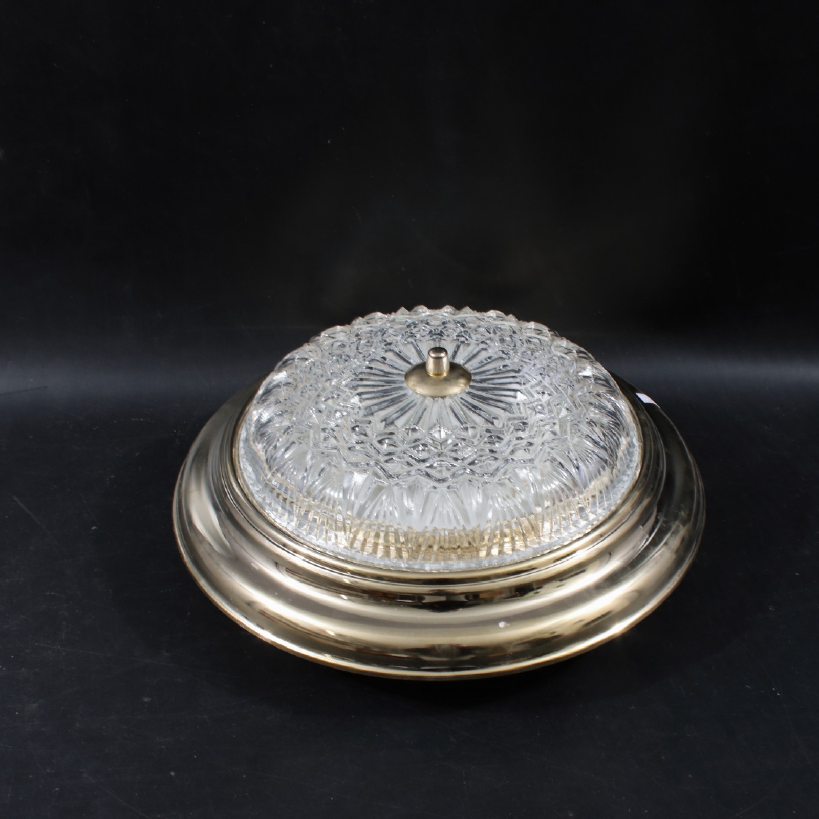 Metall och glas, höjd ca:15 cm, diameter 35 cm. (vån3)