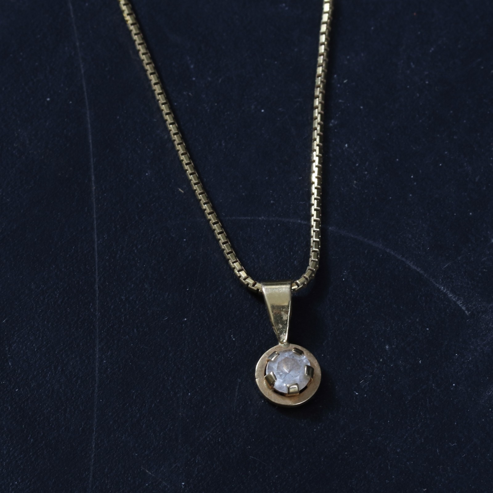 Halsband i 18 karat guld, hänge i 18 karat guld med sten, längd 38 cm, längd hänge16 mm, vikt med hänge 5,25 gram. (vån3)
