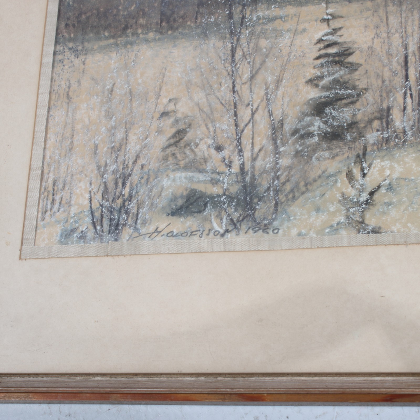 Blandteknik, "Naturscen med rådjur", signerad samt daterad 1960, ram 42,5x67,5 cm, bild 24,5x49 cm. (vån3)