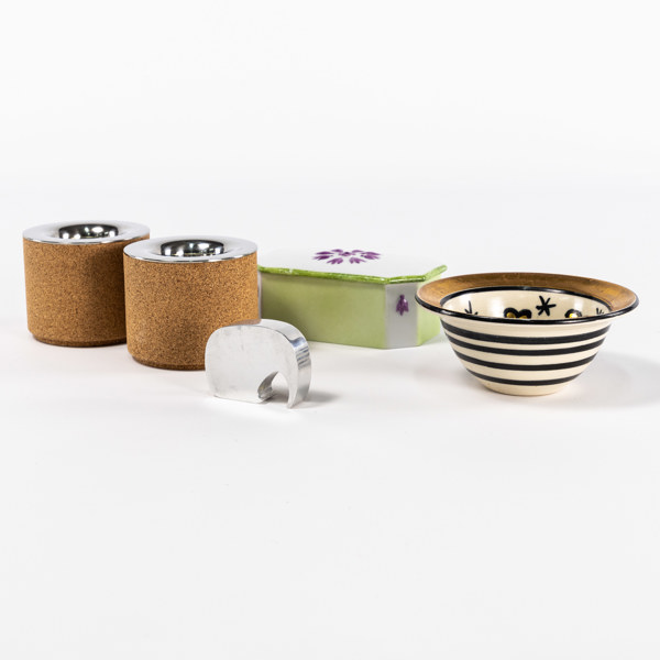 Ljuslyktor, kapsylöppnare, m.m, 5 delar, bl a Royal Copenhagen, högsta 6,5 cm