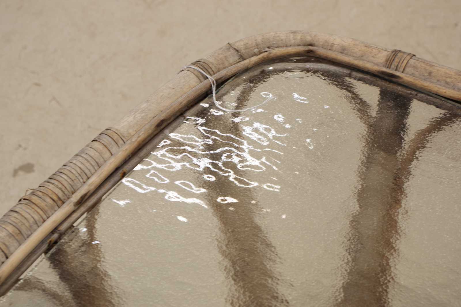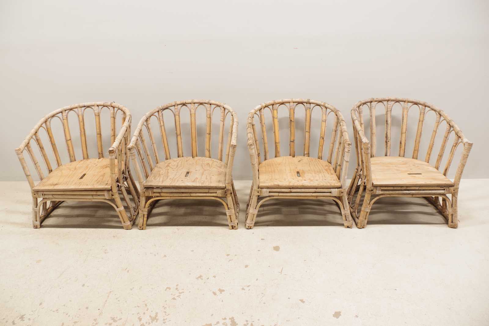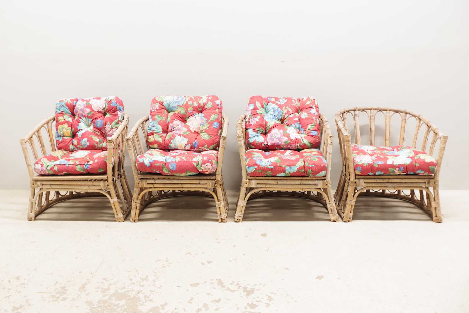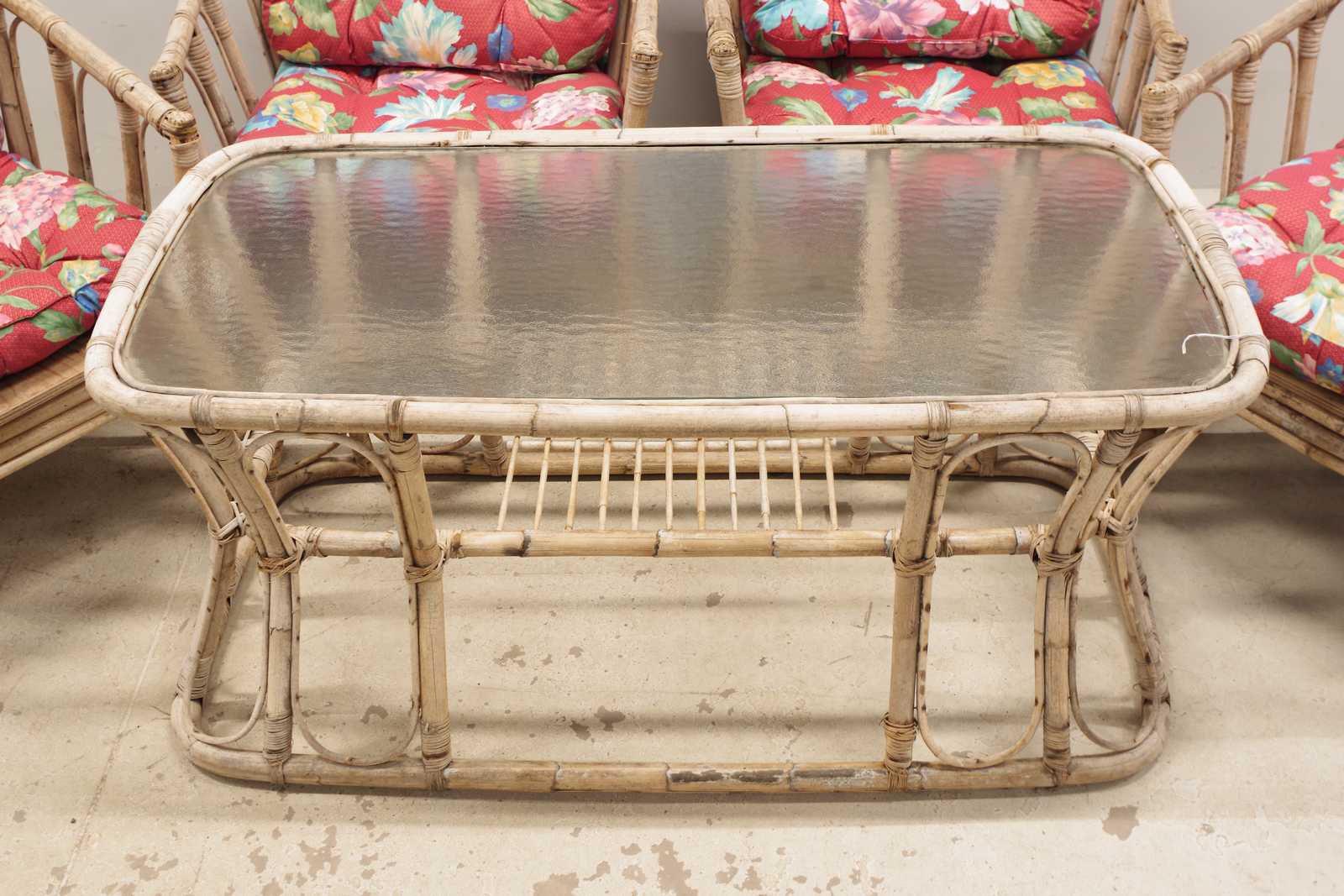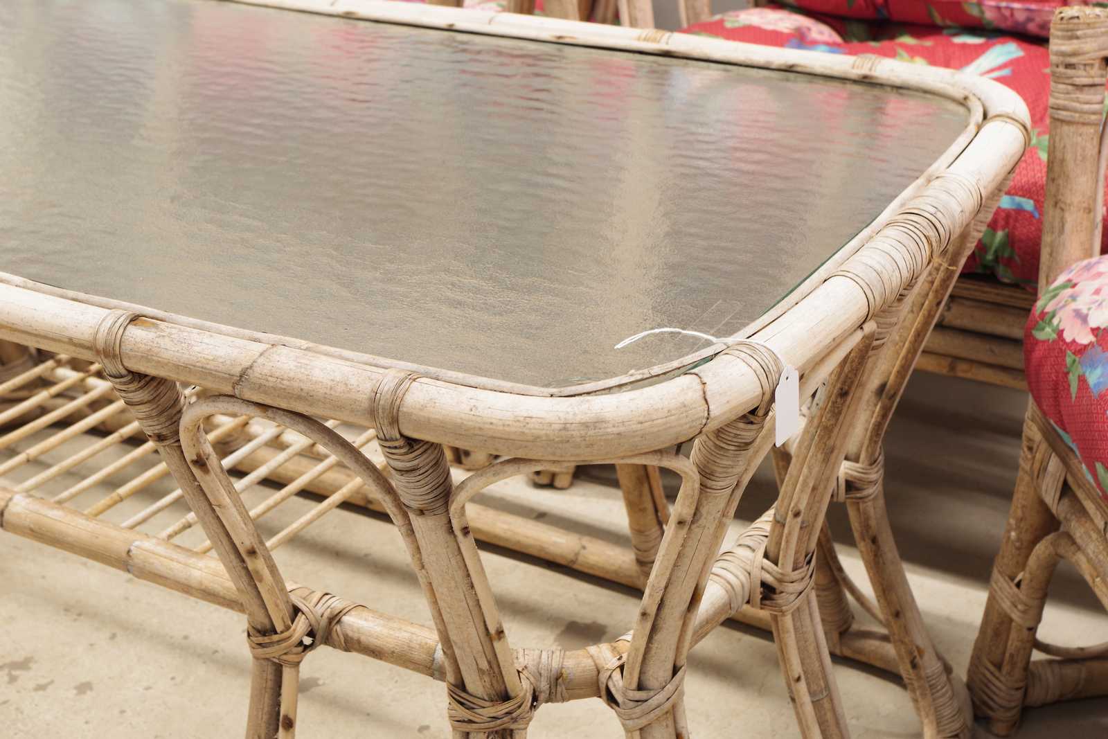 Bilder TRÄDGÅRDSGRUPP, rotting, 4st stolar & bord med glasskiva, H: 58x 130x 67cm (slitage)