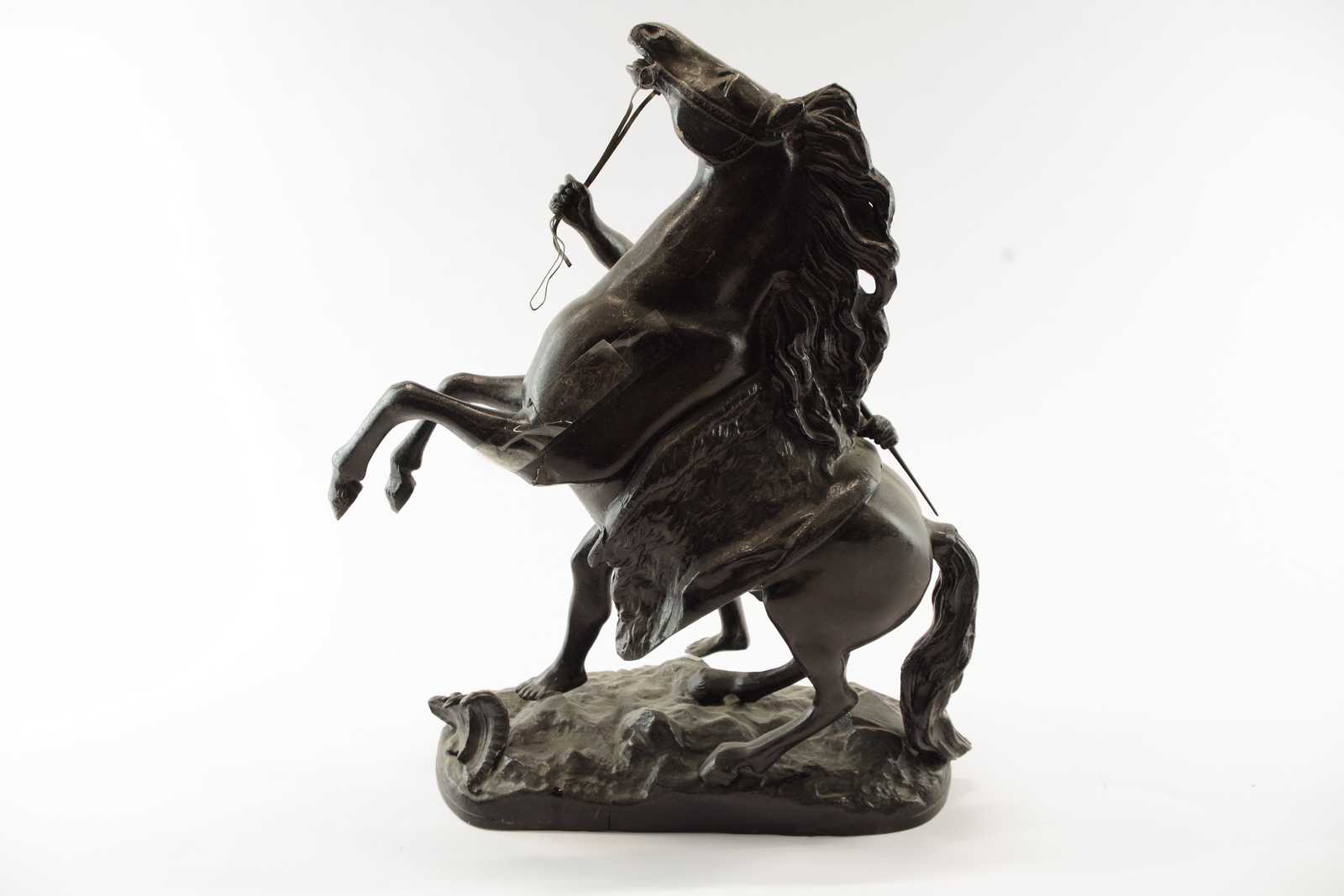 Bilder SKULPTUR, häst, patinerad metall efter "Cheval de Marly" Guillaume Coustou H:38 cm (lagad i framben)