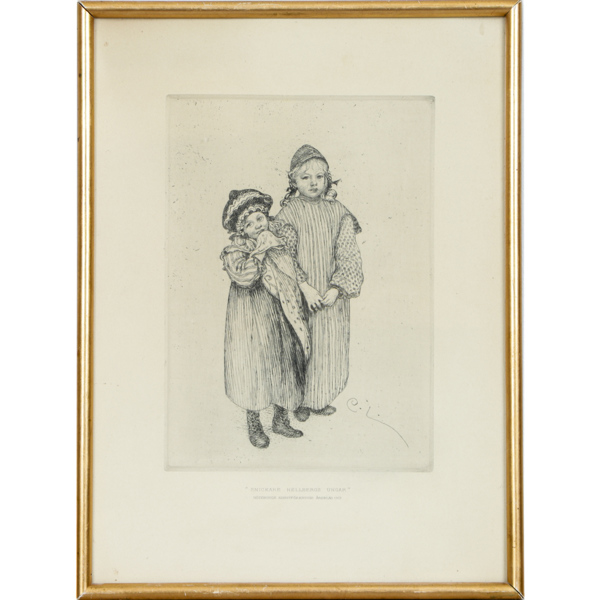 Carl Larsson, "Snickare Hellbergs ungar", etsning, signerad i trycket