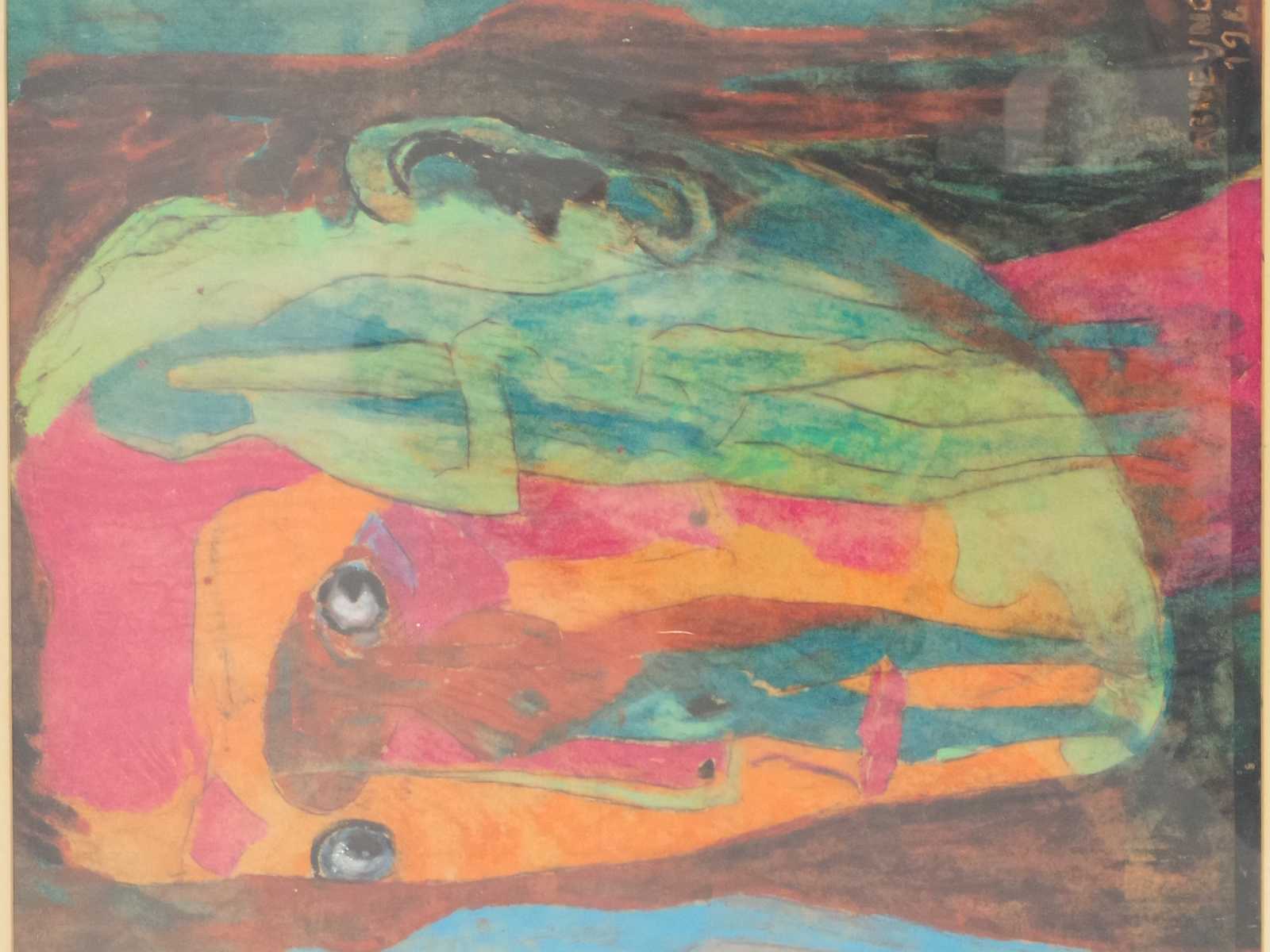 TAVLA Arne Yngen, blandteknik, signerad & daterad 1960. 38x46cm bildytans mått