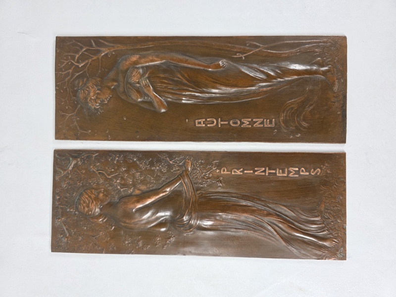 Väggreliefer, 2 st, Jugend, koppar