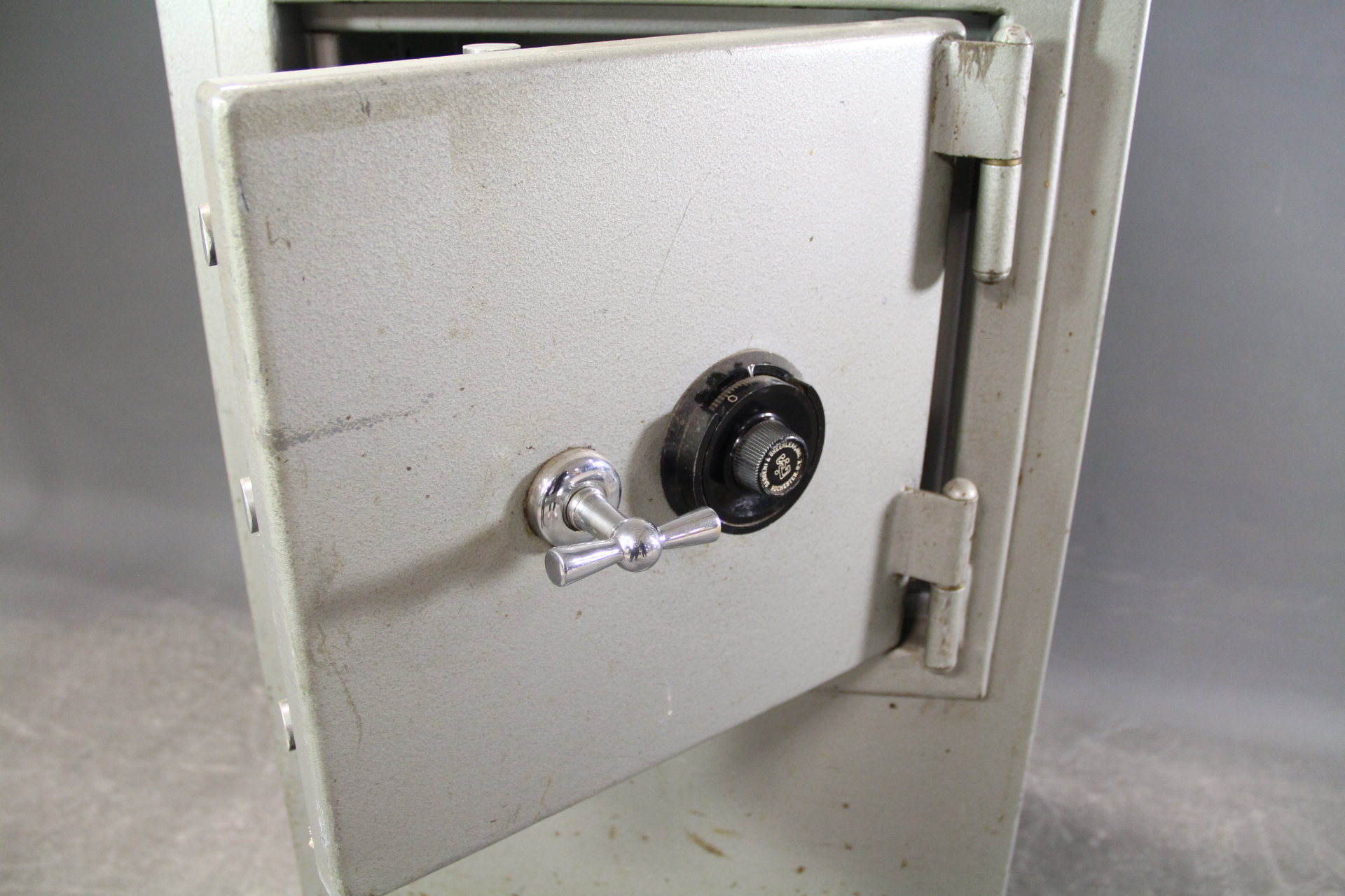 H: 80 cm, 55 x 50 cm, skåpet öppet men låst, kombination saknas, slitage