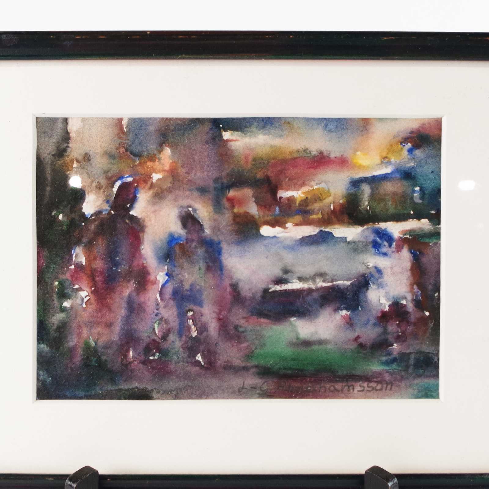 Bilder TAVLA L-G Abrahamsson, akvarell. 19,5x13,5cm.