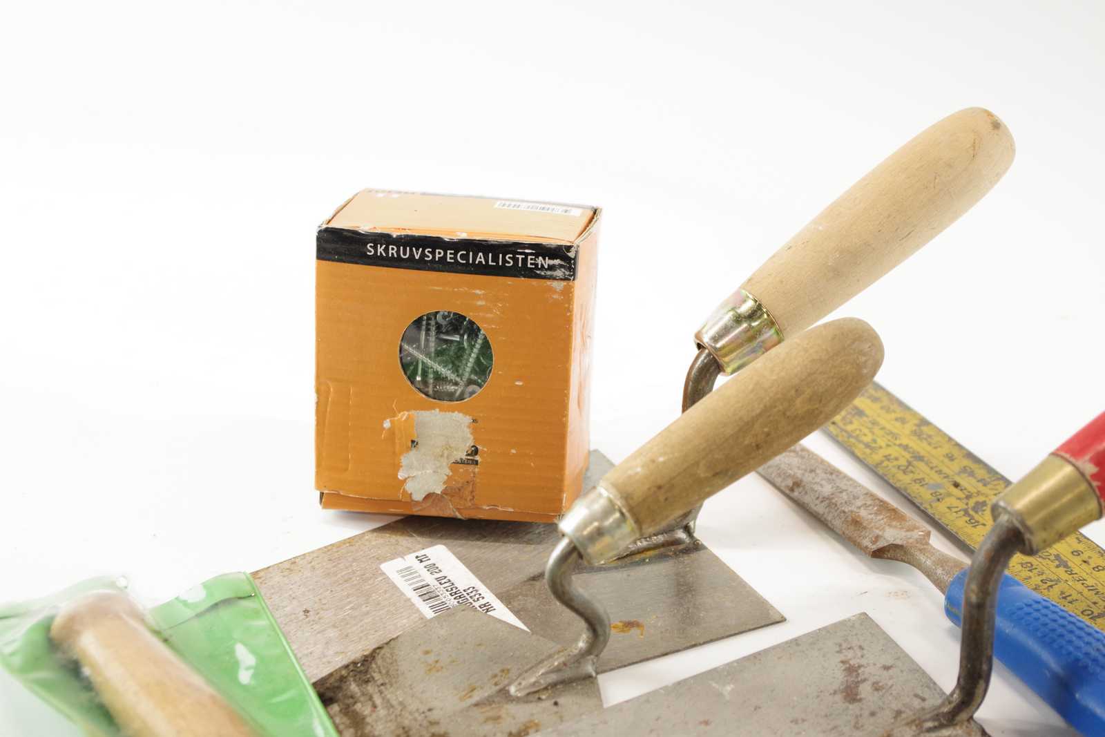 VINKELHAKE, STÄMJÄRN, VATTENPASS, TRÄSKRUV mm