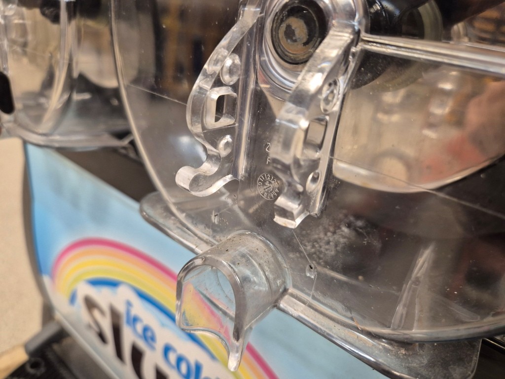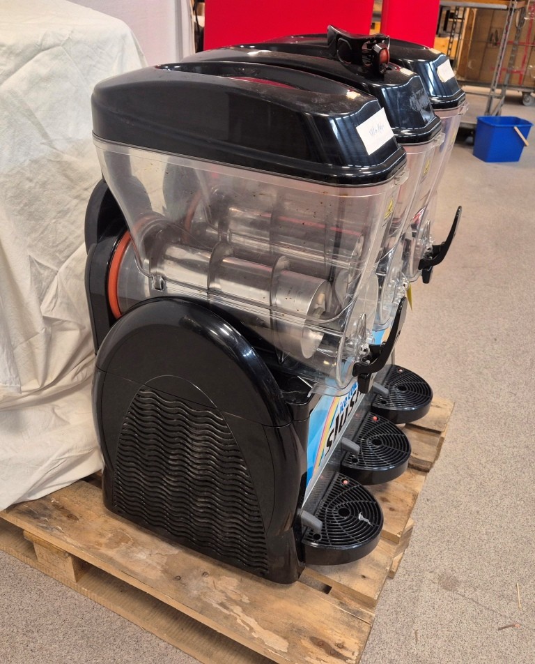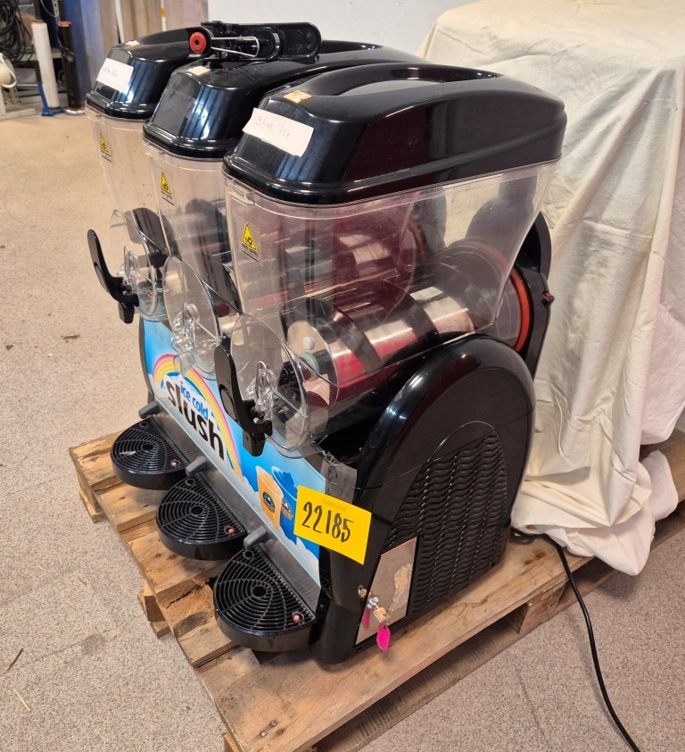 Slush-maskinAnmärkning: Ej fullständigt funktionstestad, fungerande enligt uppgift från säljare, trasig hållare till kran på mittbehållare, endast testad av oss att rullarna snurrar, inga garantier lämnas.