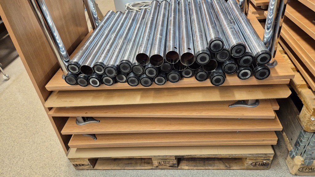 10st bord med snabbfäste (insexskruv) på benen för enkel förvaring när de inte används.Mått: 115x70x73cm