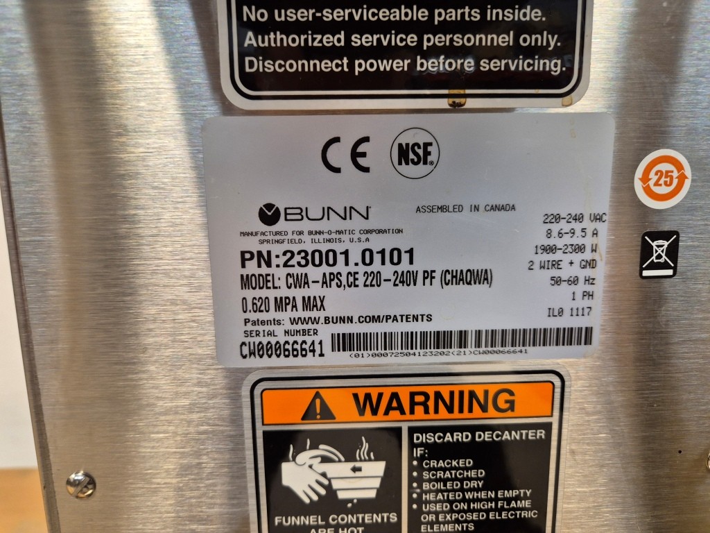 Kaffebryggare BunnModell: CWA-APS2st termosdispensrar BunnModell: TF server 5,7lFunktionstestad: Ok