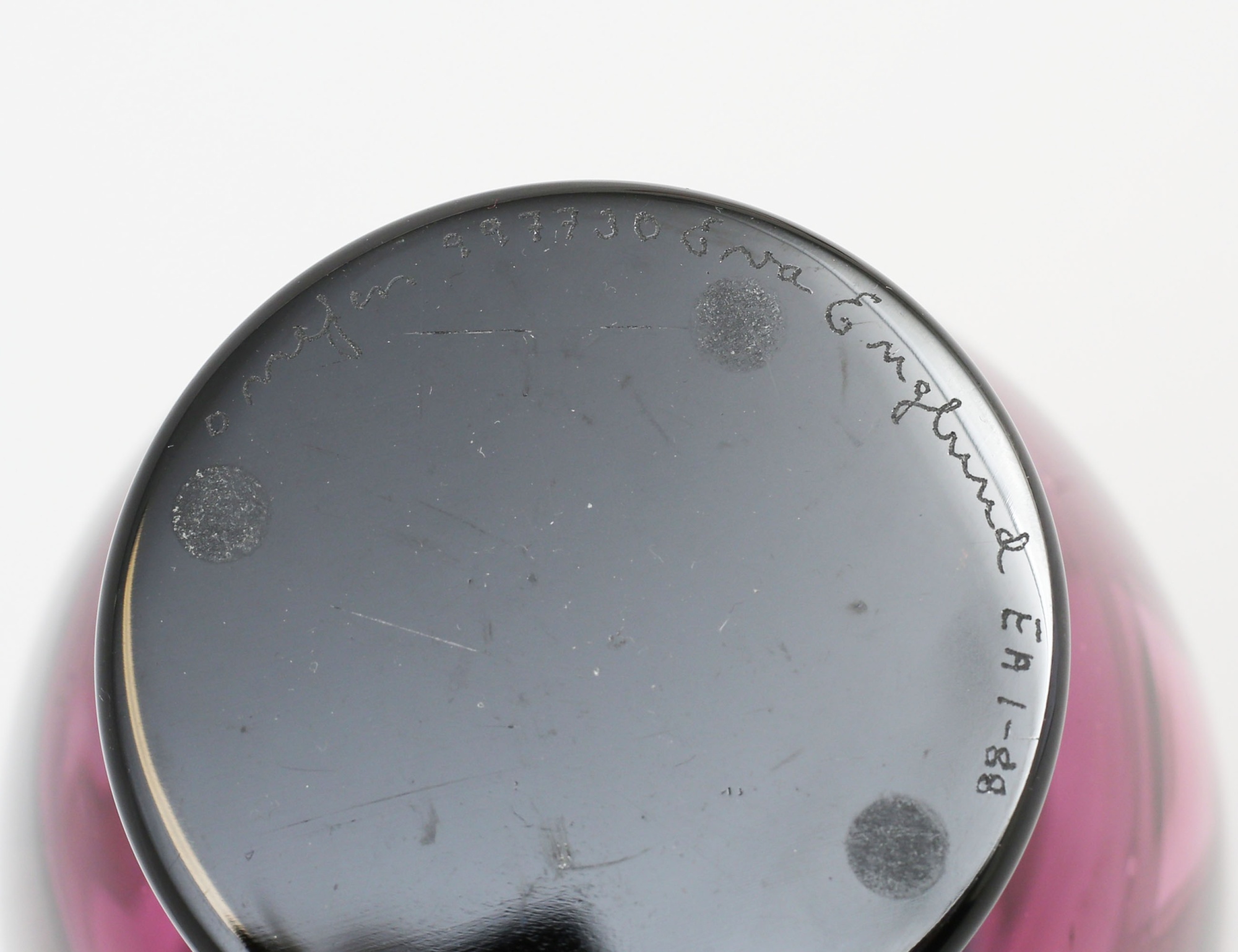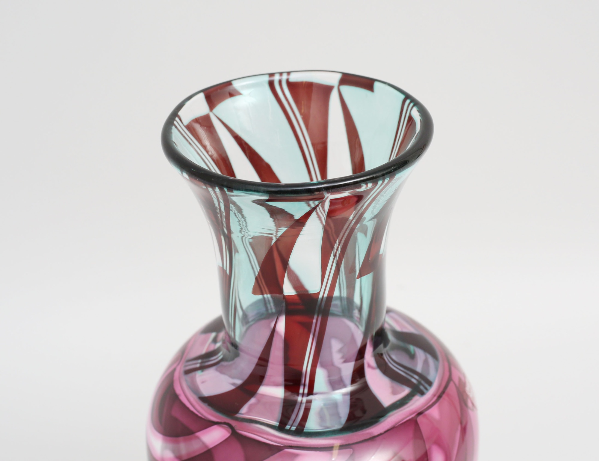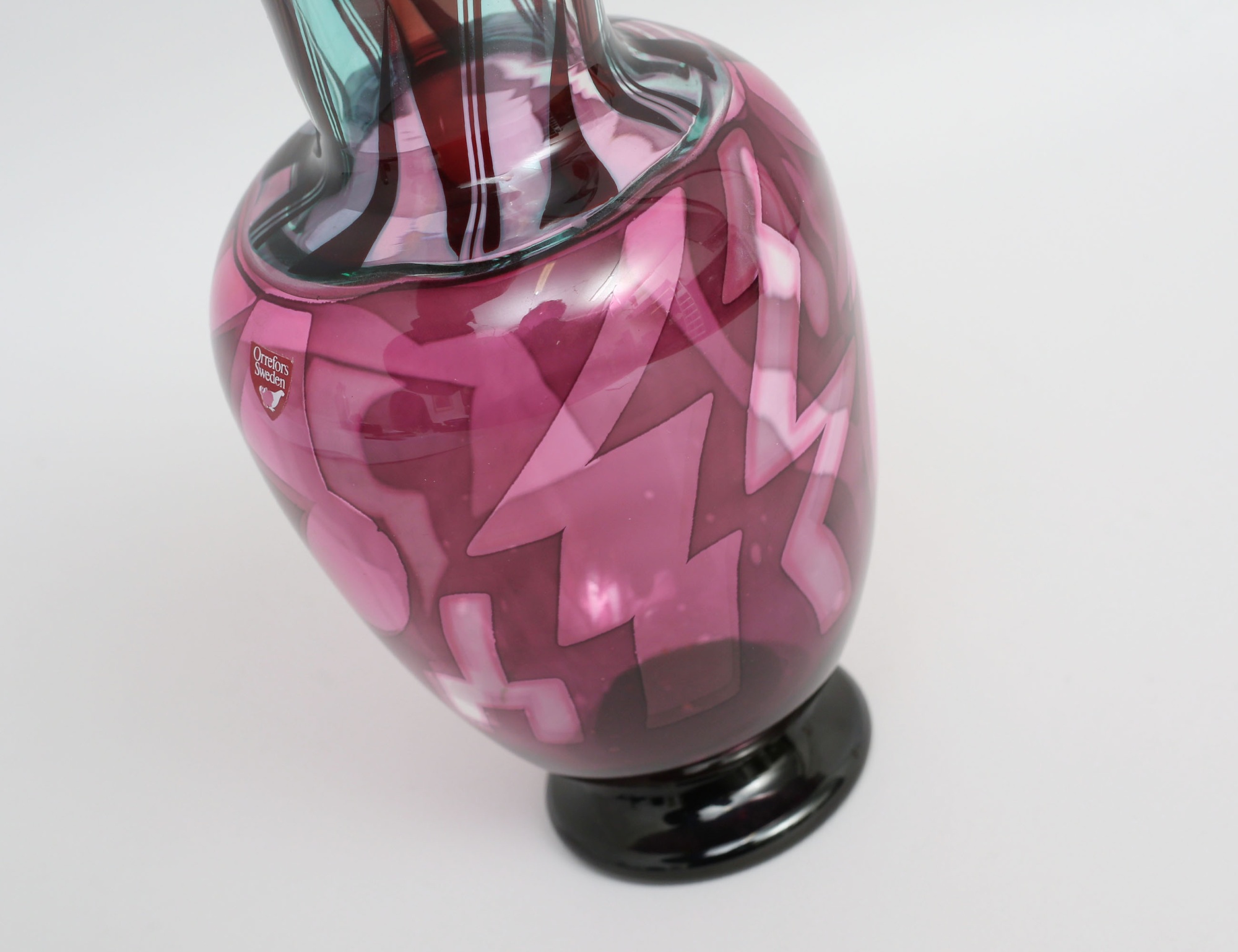 vas underfång, rosa och ljust gröntonat glas, abstrakt dekor, signerad och numrerad 997730, höjd 24,5