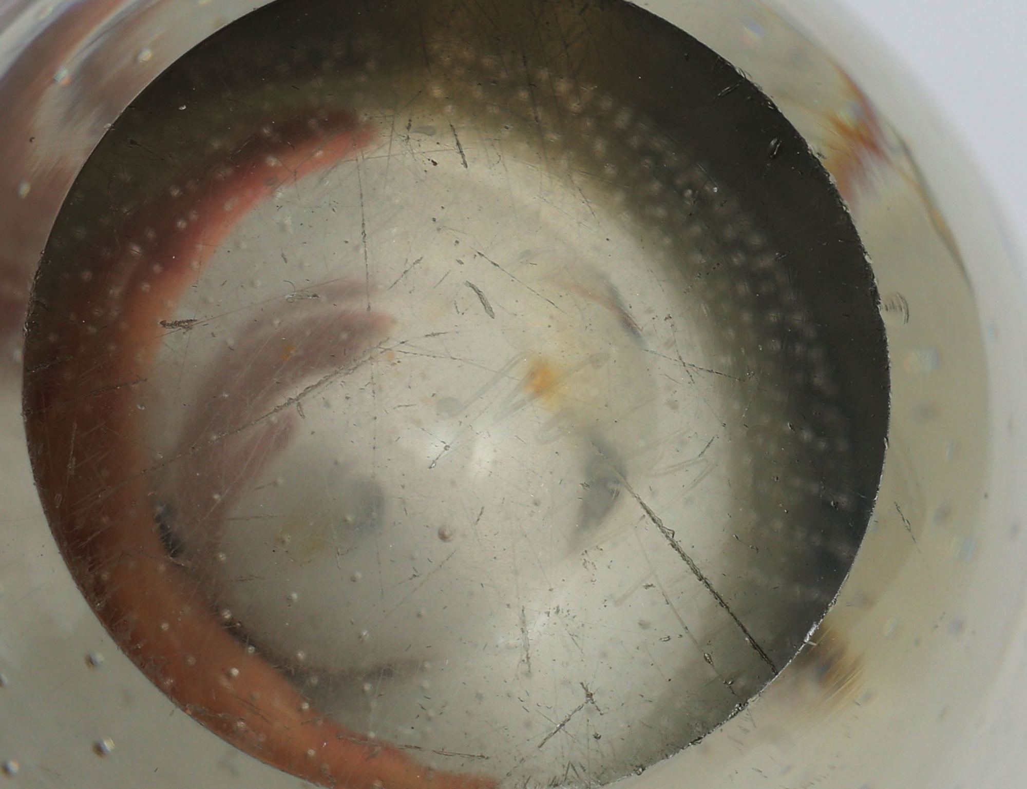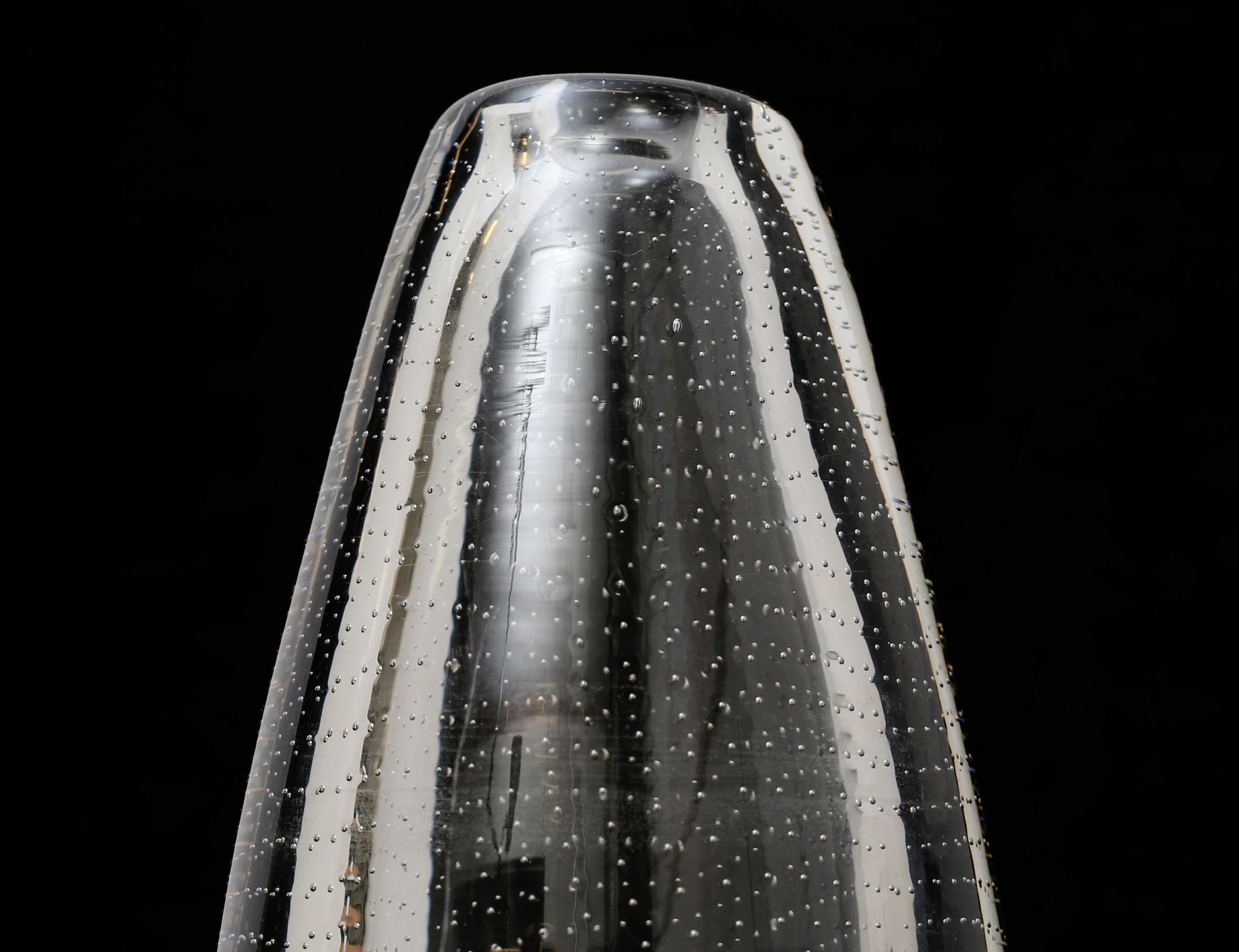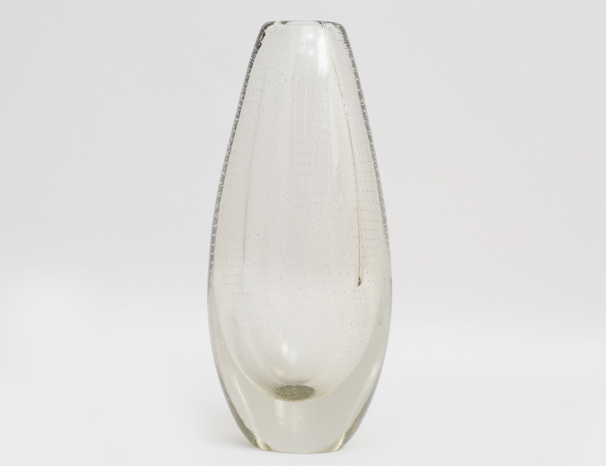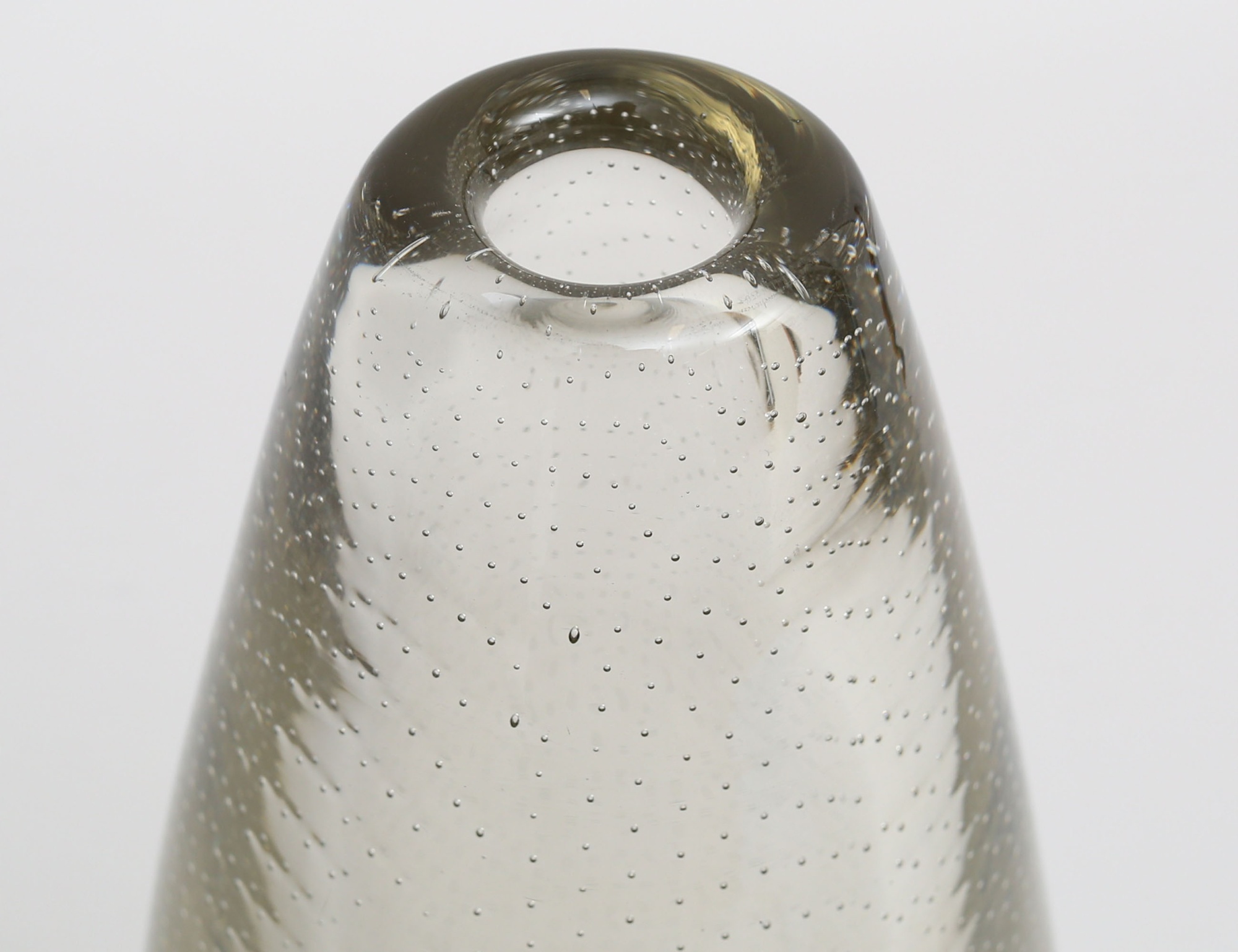 vas svagt gultonat glas, innesluten mesh av luftbubblor, signerad G. Nyman Notsjö 1947, höjd 23,5