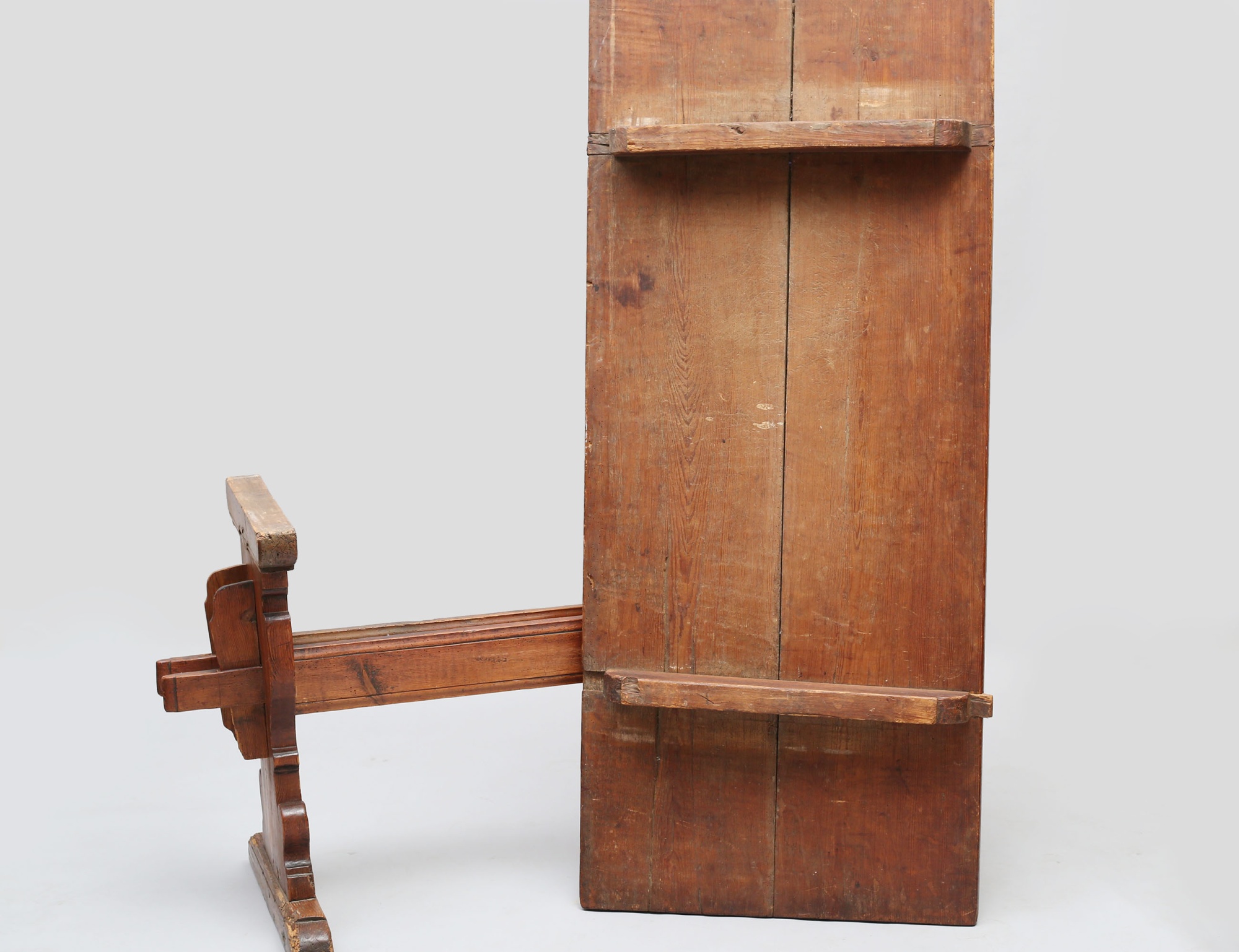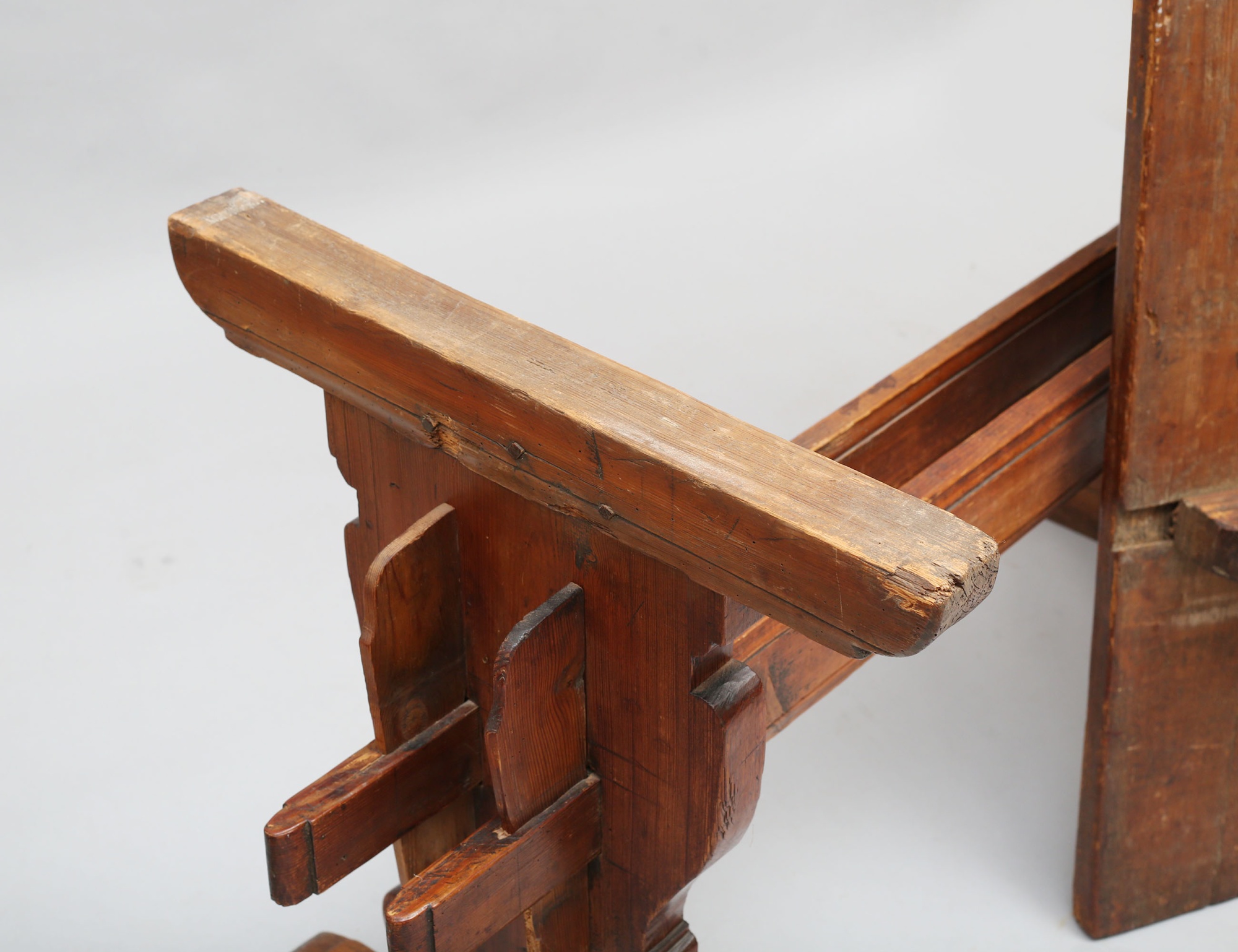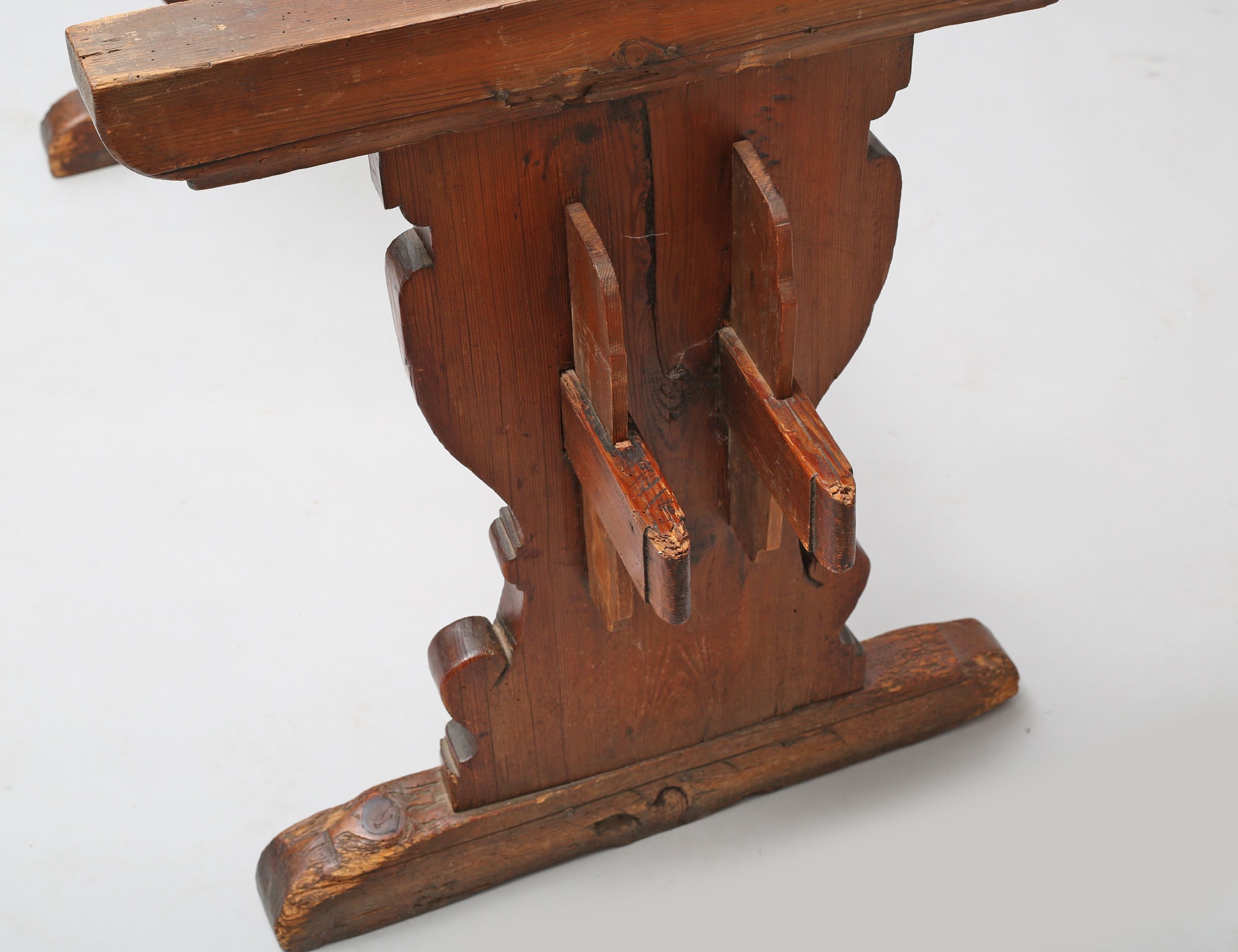 furu, balusterformade sidostycken, sammankopplade med två bjälkar, höjd 80, bredd 71, längd 178 (smärre åldersrelaterade lagningar och skador)