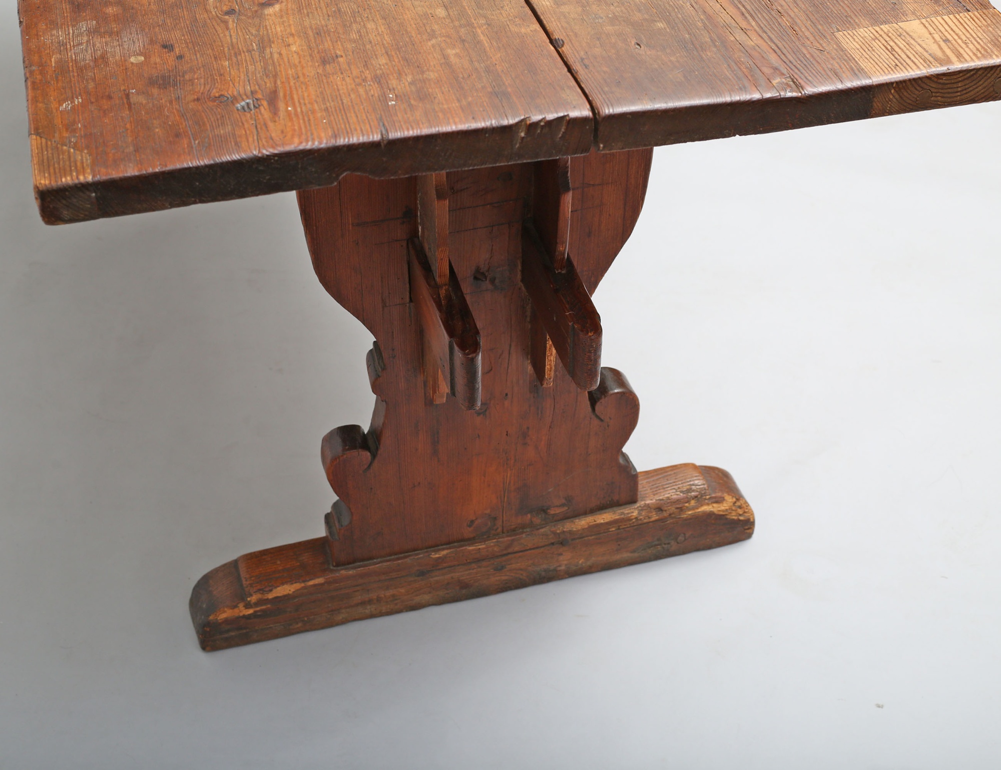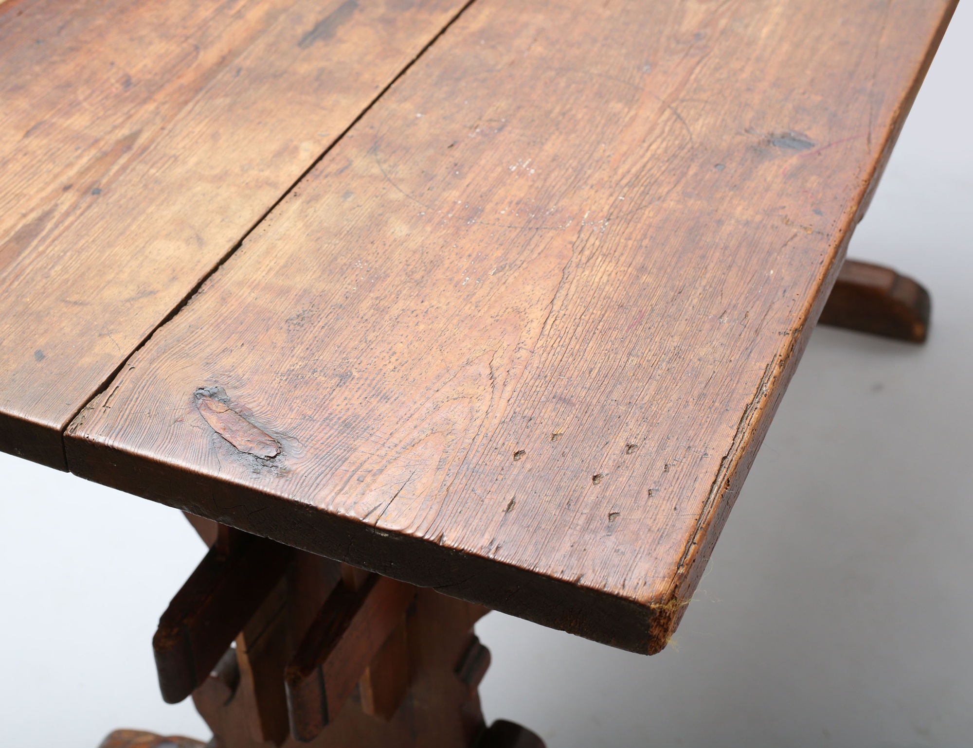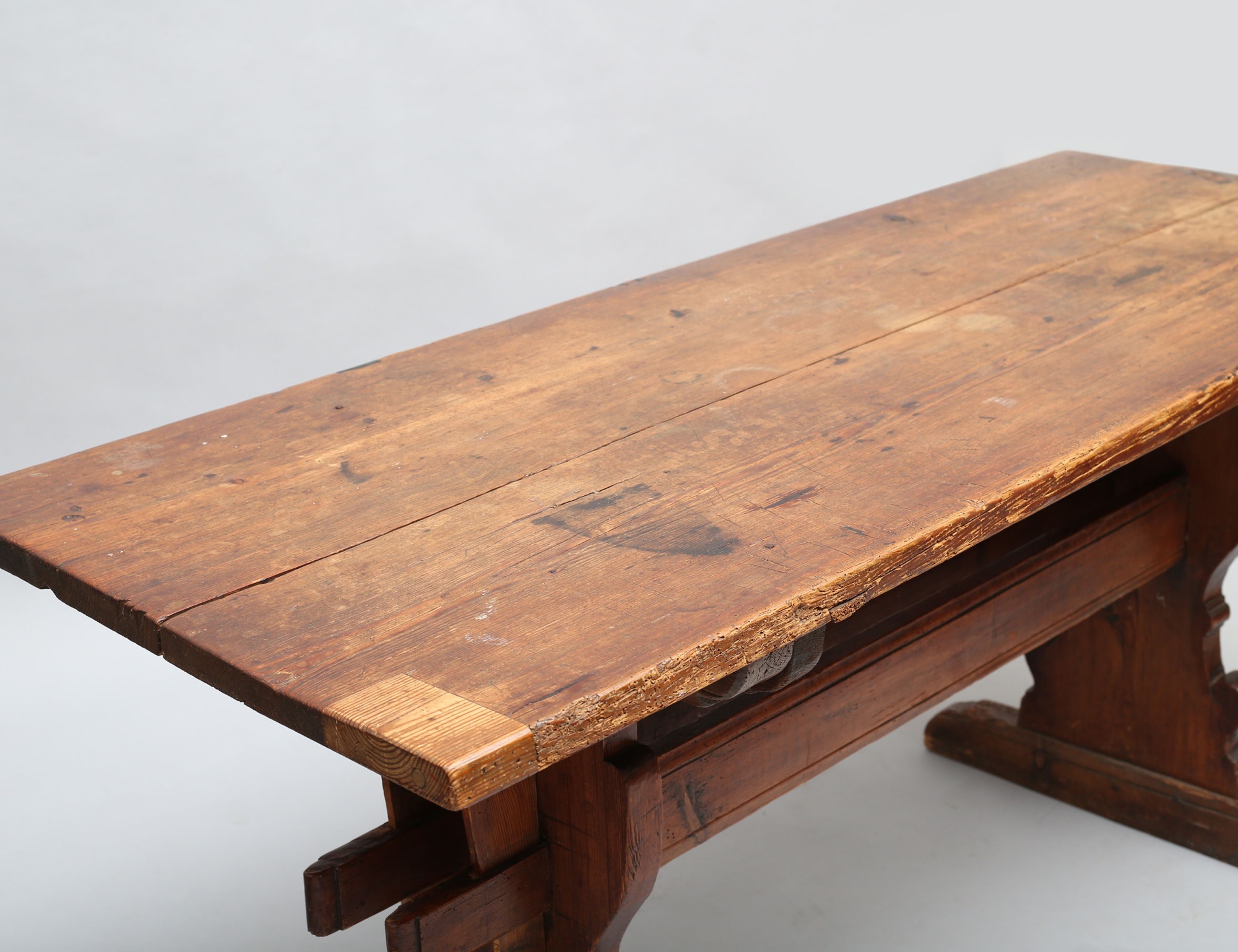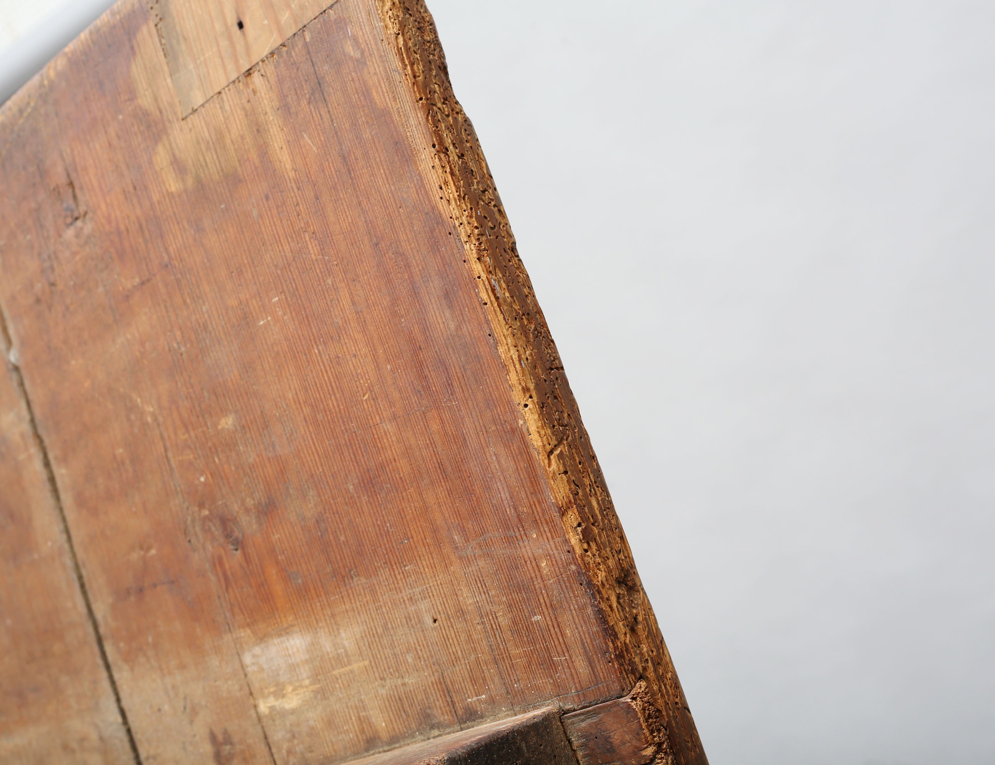 furu, balusterformade sidostycken, sammankopplade med två bjälkar, höjd 80, bredd 71, längd 178 (smärre åldersrelaterade lagningar och skador)