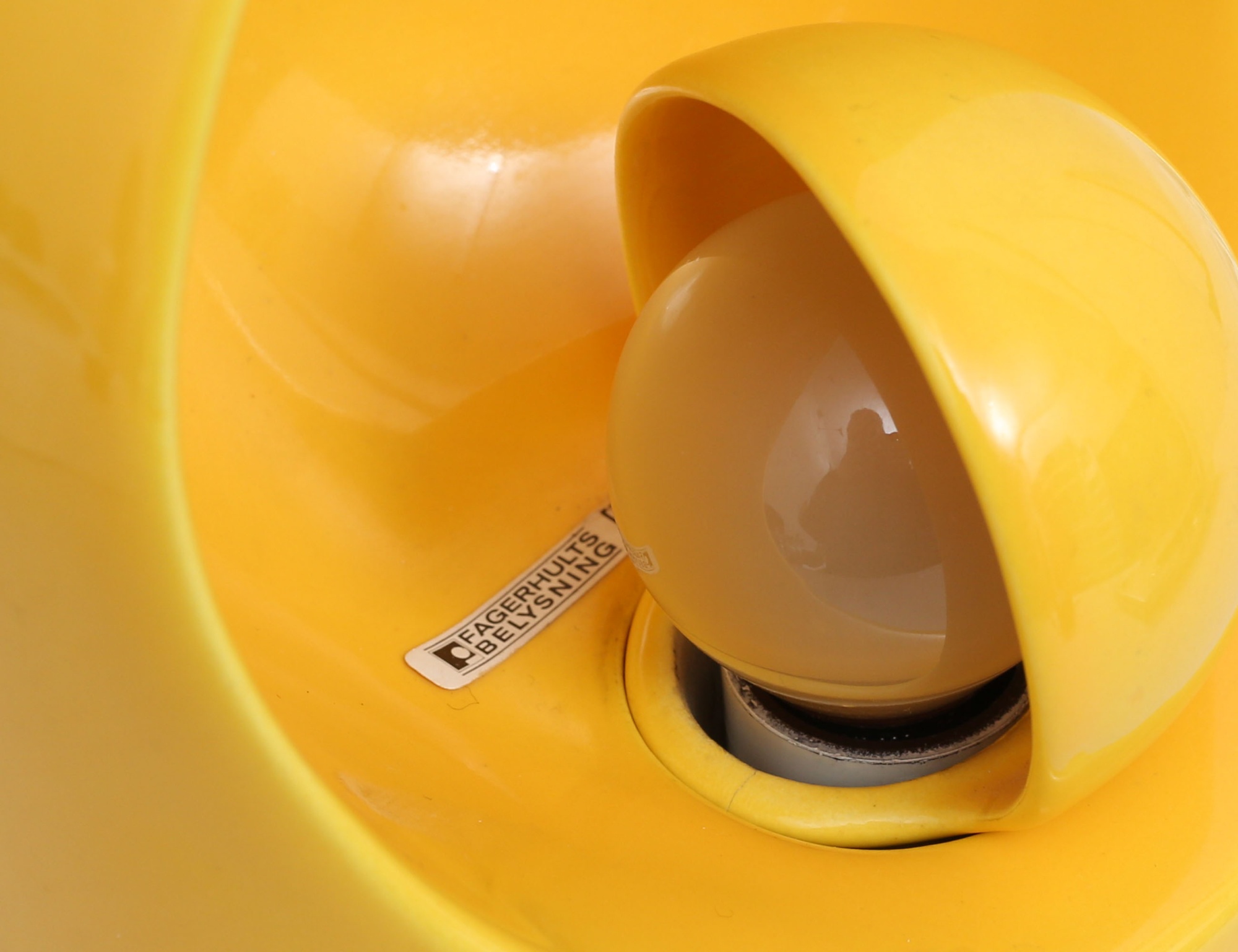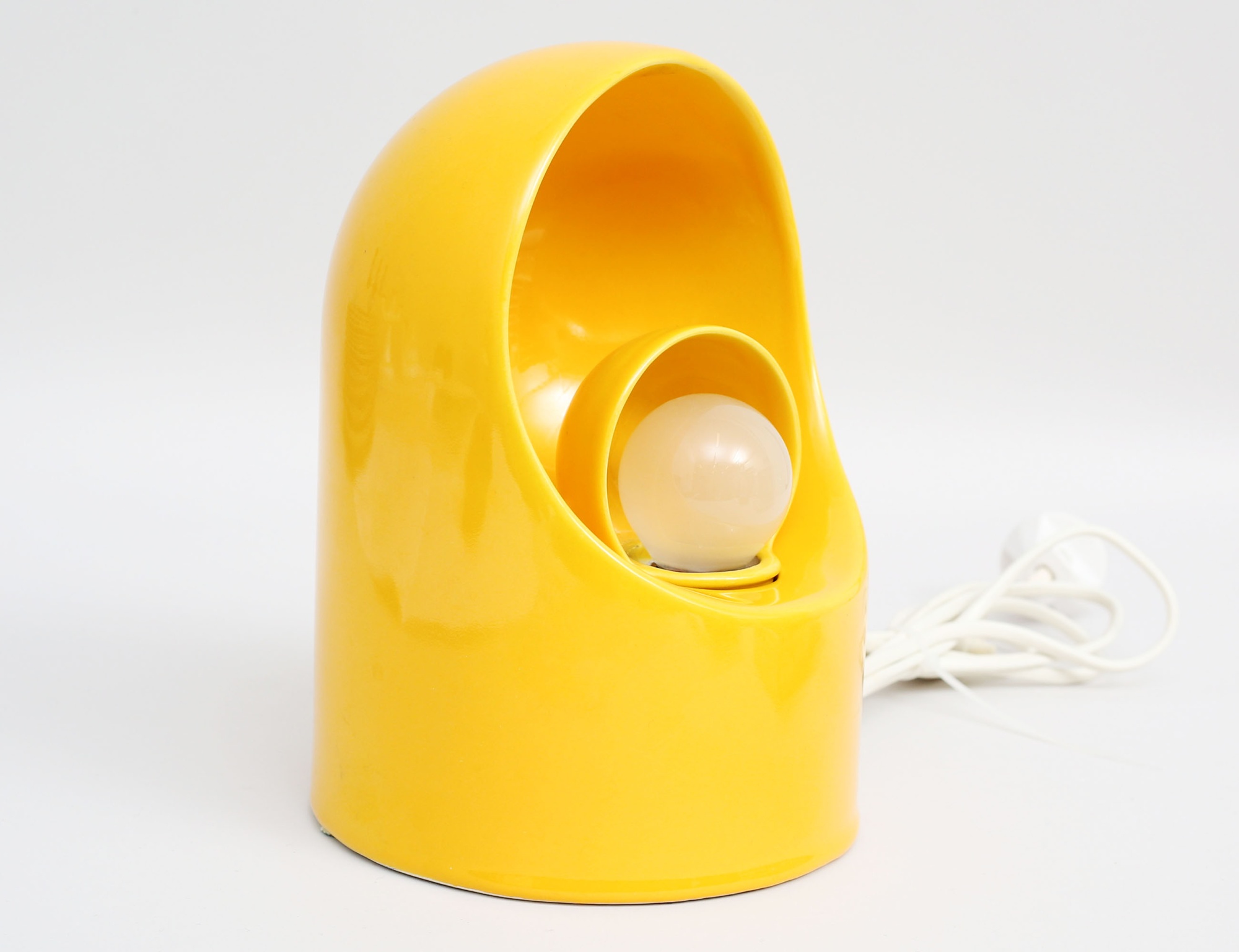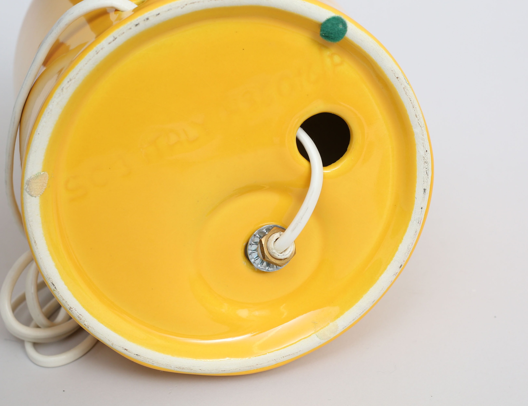 Alfredo Papi Fagerhults Belysning 1970-tal, gulglaserad keramik, vridbar mittdel, etikettmärkt, funktionstestad, höjd 21 (löst lampfäste, mittdel med spricka)