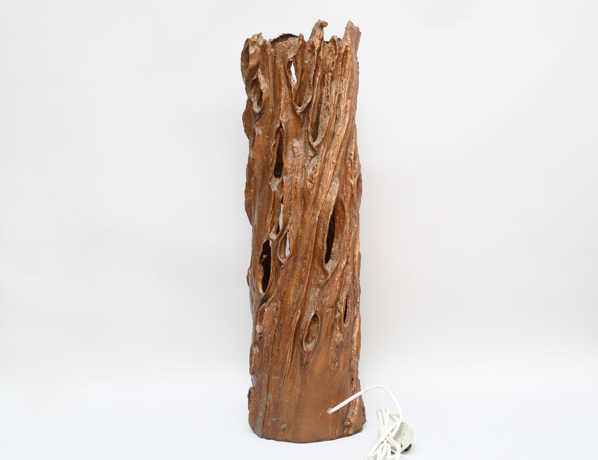 golvlampa 1960/70-tal, genombruten skulpterad koppar, osignerad, funktionstestad, höjd 70, diameter 19