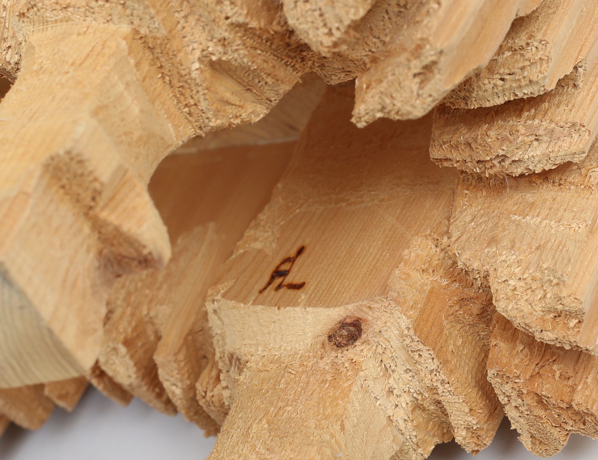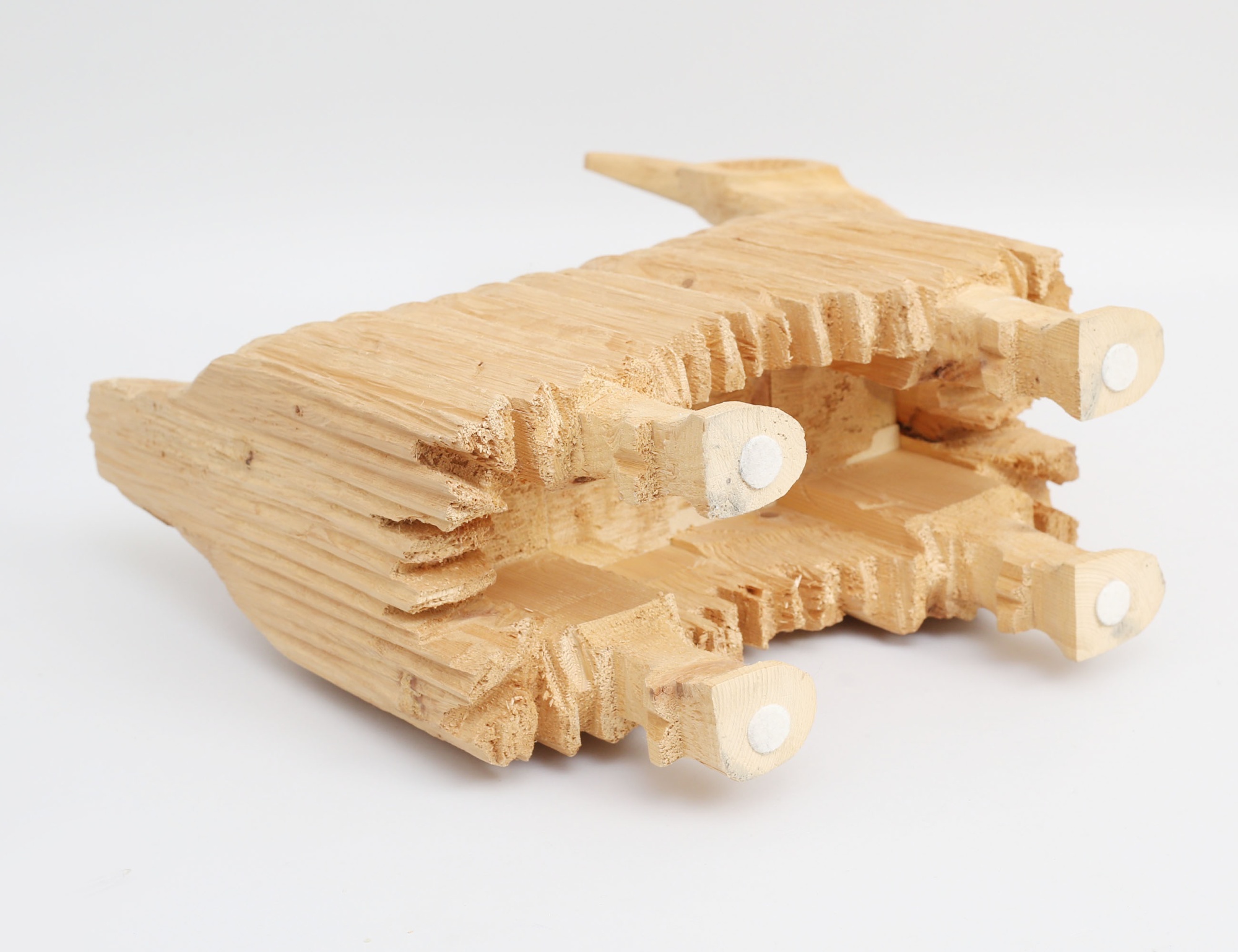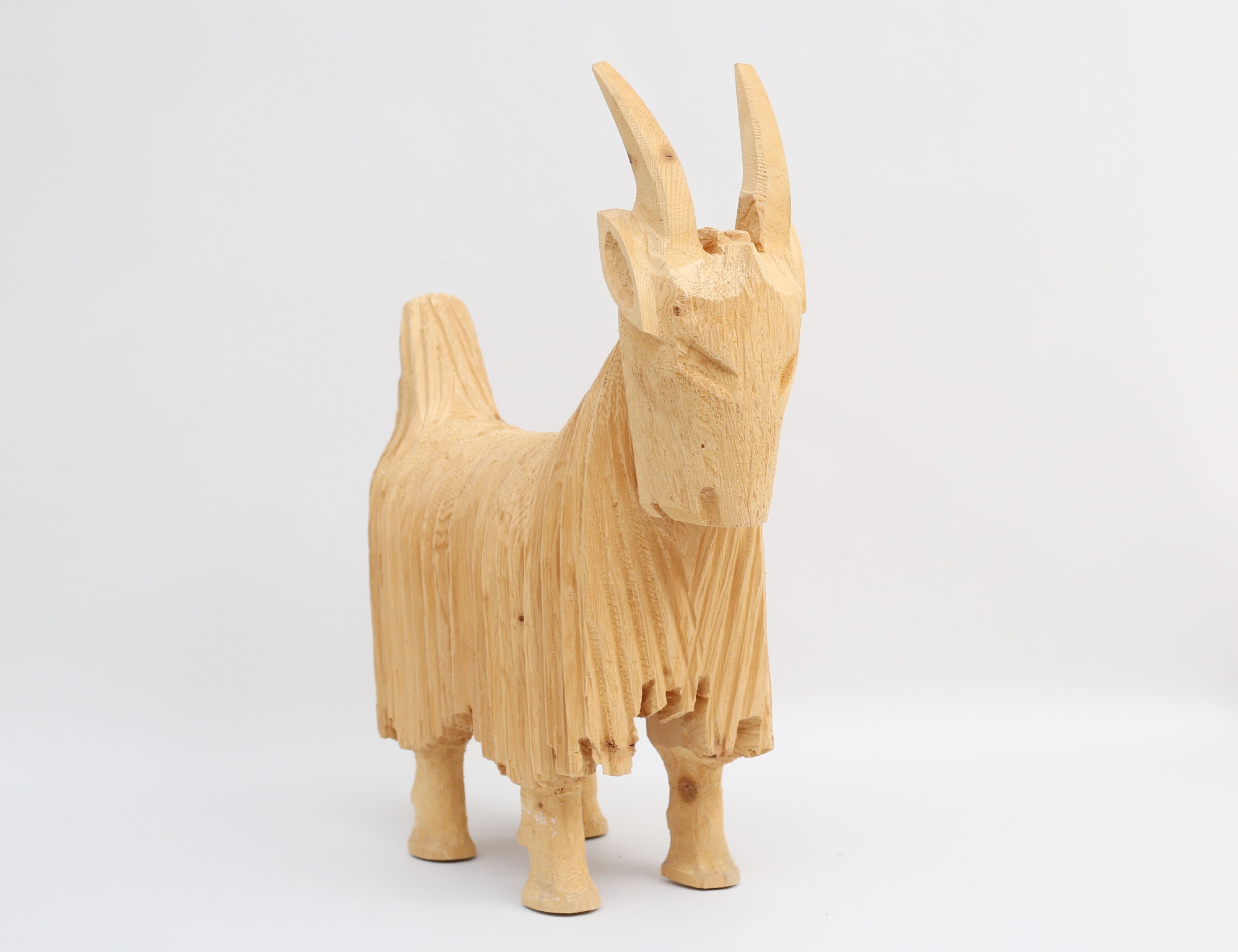 skulptur i form av julbock, skuret trä, monogramsignerad, (Malmbäck Fällfors Västerbotten), höjd 50, bredd 44x13
